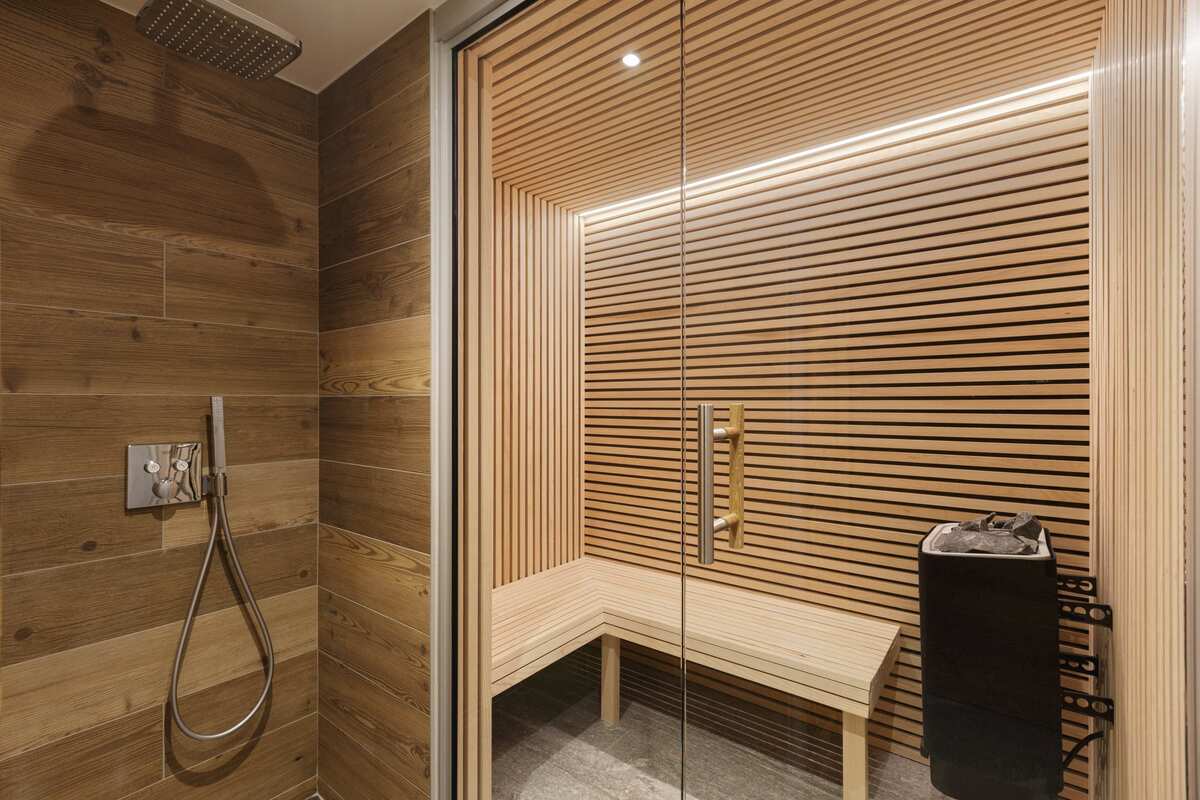 There are four principal guest bedrooms (three doubles and one twin) and a separate TV room which can be converted to a fifth bedroom if required. Two of the larger bedrooms offer a dressing area and all have their own shower or bathroom. In the entrance hall there is plenty of storage space for your gear and a ski locker on the porch. There is also an indoor sauna (which has its own shower) for an added touch of refinement and relaxation.