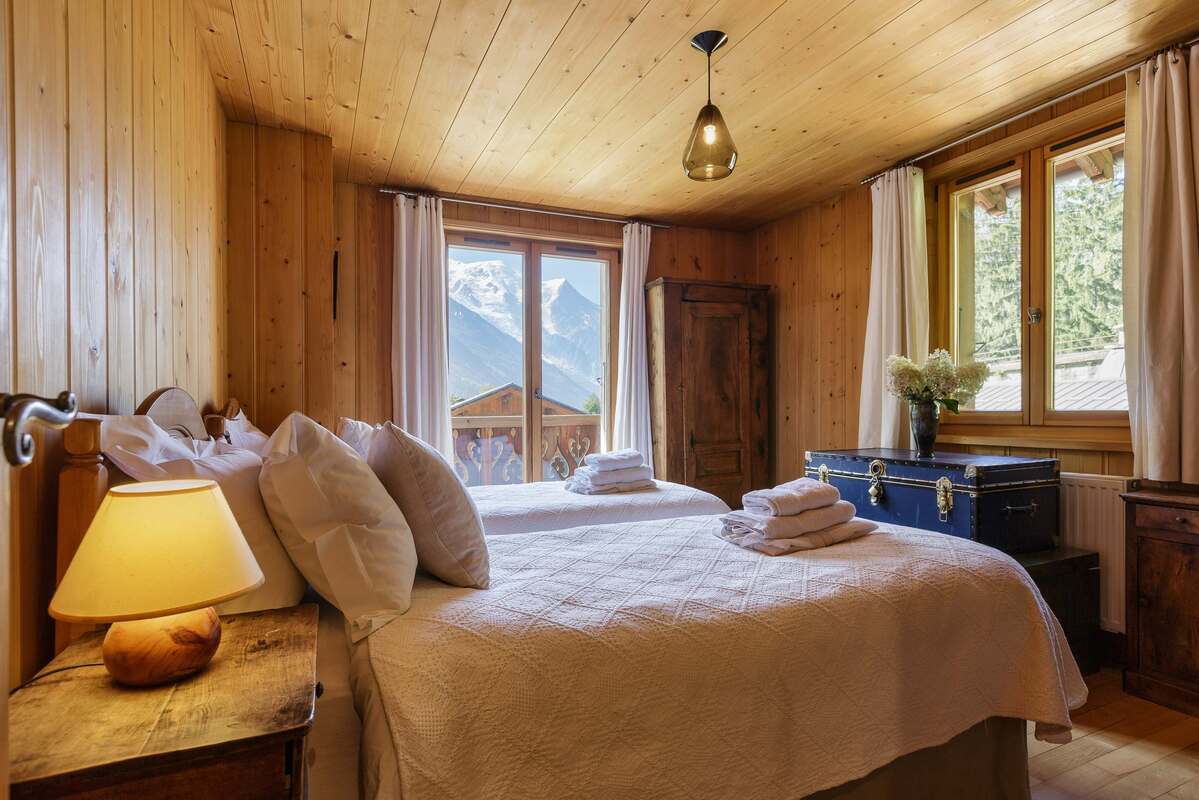 Charming chalet in a quiet location - great views of the Mont Blanc and a lovely open fireplace and outdoor hot tub.