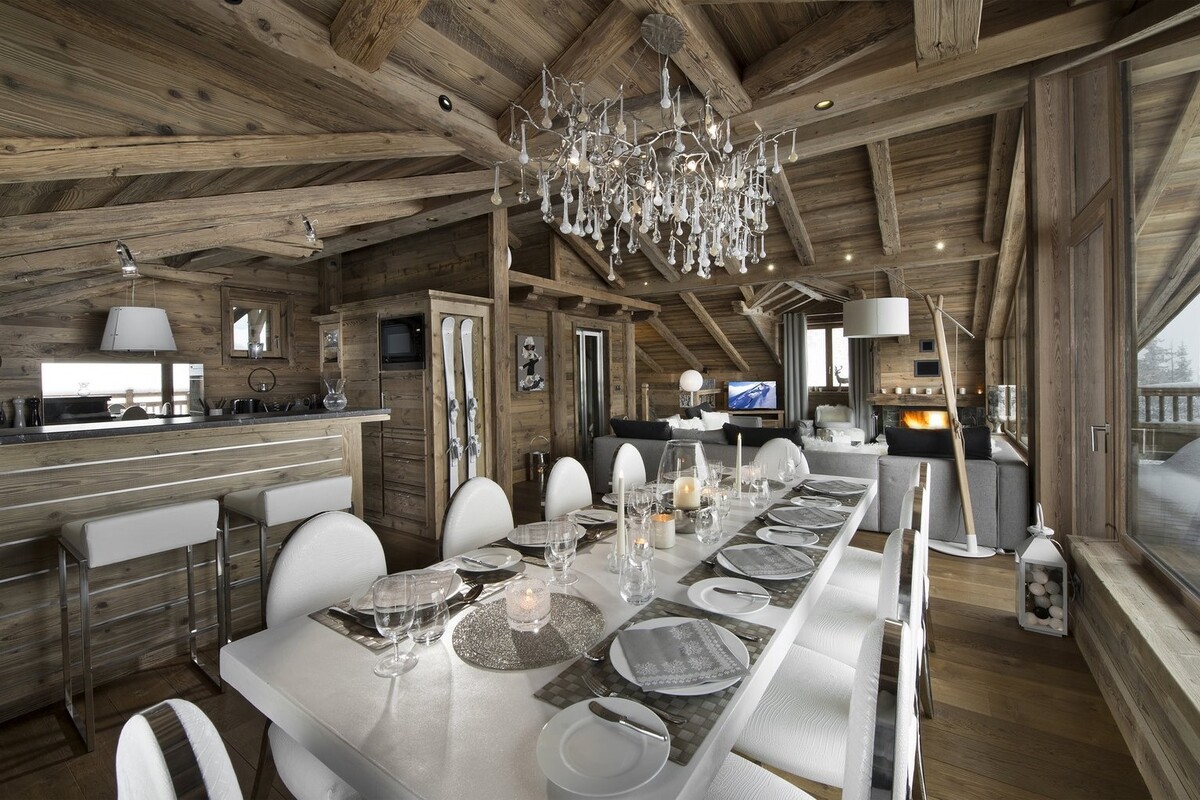 The luxury Chalet L'Or Blanc offers 270 square metres of space and can accommodate up to 10 guests. Each of the five bedrooms is equipped with a top of the range bathroom facilities. A fully equipped kitchen opens onto a huge sitting room area complete with open fireplace and access to large terrace. The home cinema, bar and hot tub offer the finishing touches to a high class chalet in this ever improving Three Valleys ski resort.