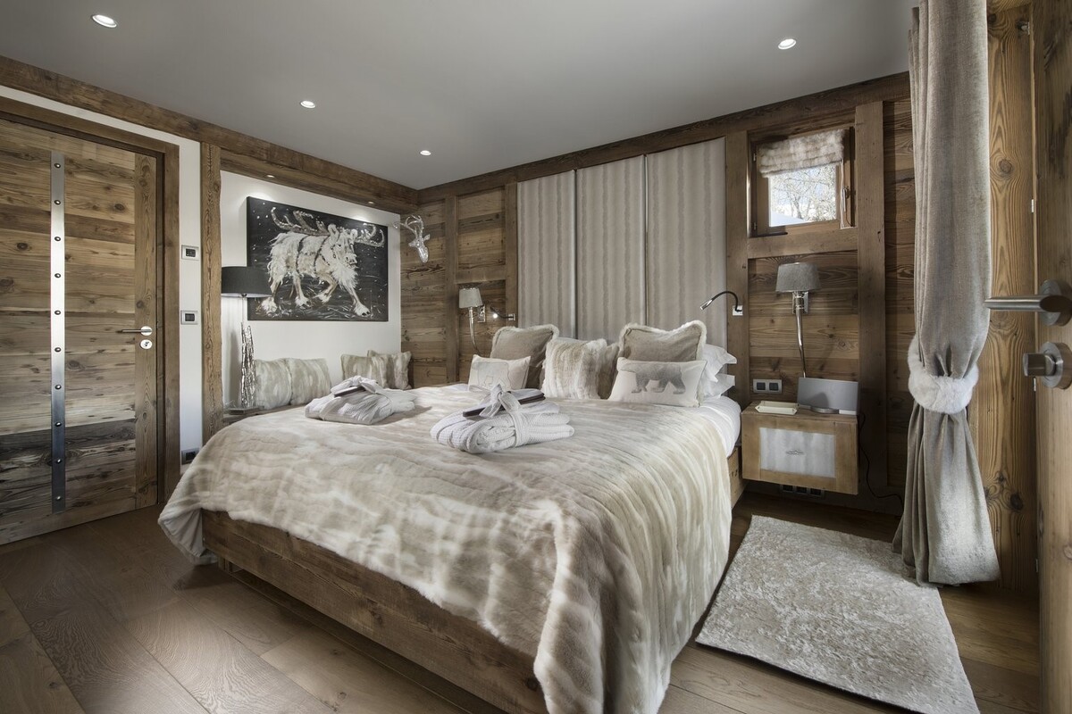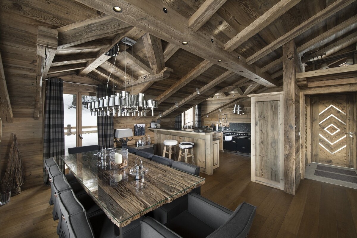The Chalet M has five en-suite bedrooms and is suitable for 8 adults and 2 children (in the bunk bedroom). The interior design uses traditional old wood panelling to give this lovely property authentic alpine style. 'Luxury', 'calm' and 'nature' were the three words that the interior designer used to base their work on. However, there are the modern conveniences of a sunken hot tub on the large sun terrace (with amazing far reaching views) and a separate TV room with cinema sound system.