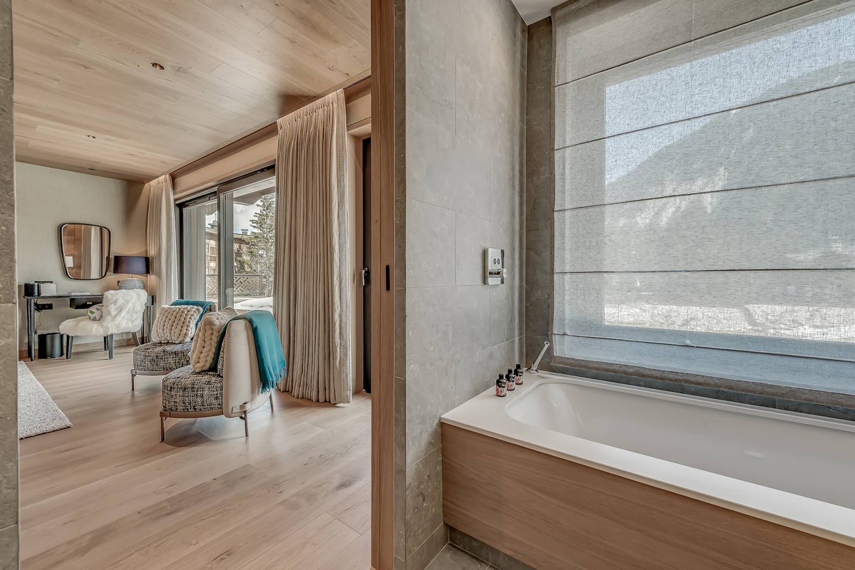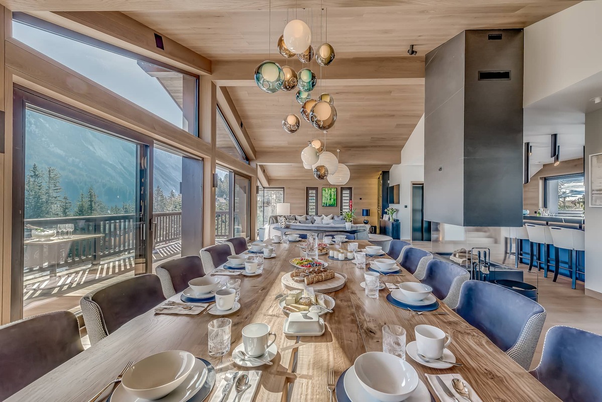 A double-height open-plan lounge with spacious dining area dominates the second floor. The living area is complemented by full-length windows which bathe this huge main living area with light and panoramic mountain views. This floor is also where the state-of-the-art kitchen is located and it is here that your chef will create their culinary magic. A large contemporary bar, perfect for a pre and/or post dinner drink completes the picture inside. The large outdoor hot tub which overlooks the slopes is the cherry on the cake.