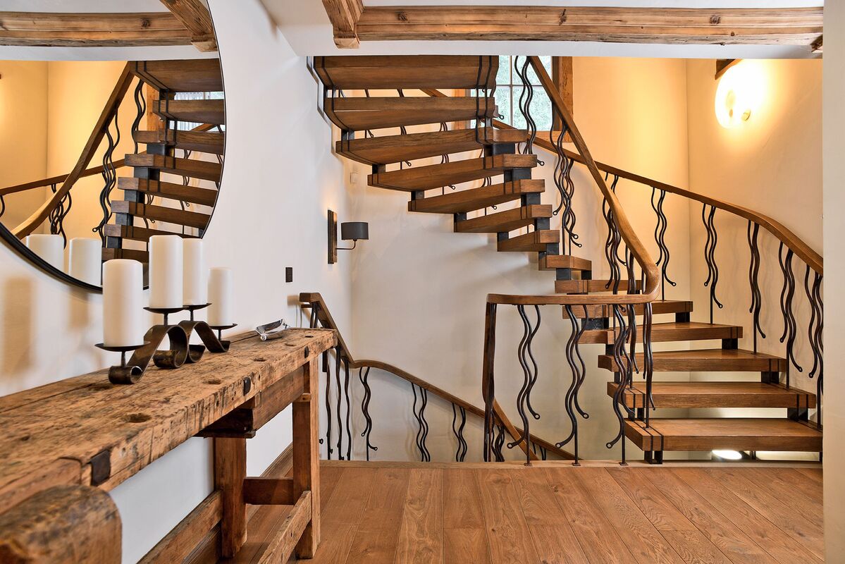 The chalet is built in high-quality wood which the interior takes full advantage of by leaving the wooden ceiling beams exposed in true alpine style. Furnished in mixed textiles with comfort and relaxation in mind. The living area is home to a lovely half-moon sofa, perfect to rest on after a day's ski and recap with family and friends. The large bay windows allow plenty of natural light in and offer spectacular mountain and nature views.