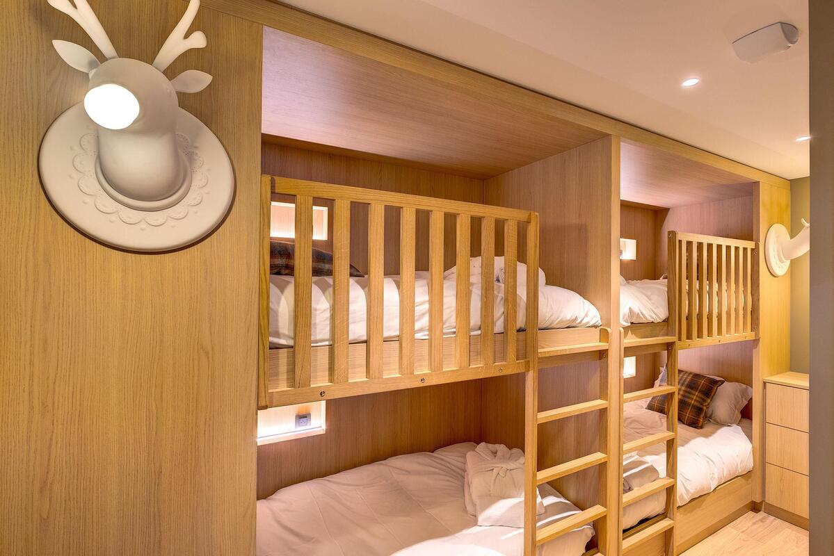 With 210 square metres of internal space spread across three floors, this spacious chalet can comfortably accommodate up to 12 guests in four en-suite bedrooms and a quad bunk room for children.