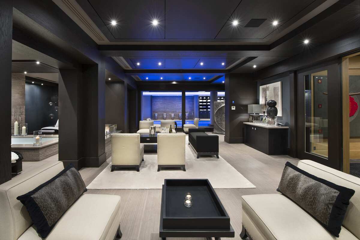 - Cinema room, bar area, music system. Spa: hammam, Jacuzzi, treatment room and gym. Swimming pool (14m x 5m) with waterfall feature. Wi-Fi internet connection throughout the chalet. Advanced security system providing constant surveillance. Private garage for 5 cars. Staff area. Laundry.