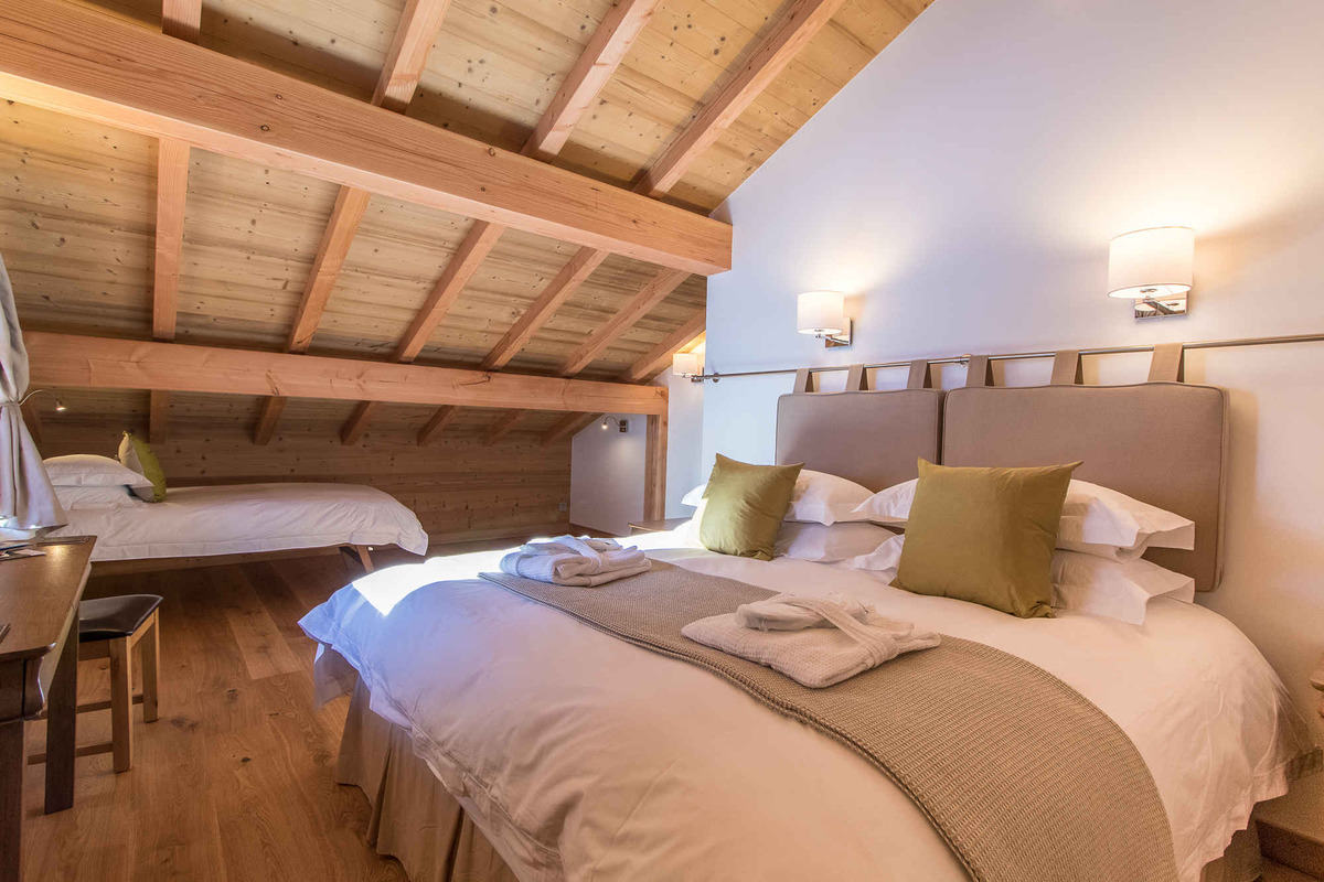 This luxury chalet, the third under the APASSION brand, boasts a large open plan lounge/dining room with comfortable leather sofas, wood burning stove and fabulous mountain views. In addition a large balcony to the side of the chalet provides magnificent views of the Criou and Mont Buet Mountain peaks. A second lounge on the top floor is a perfect place for children to play.