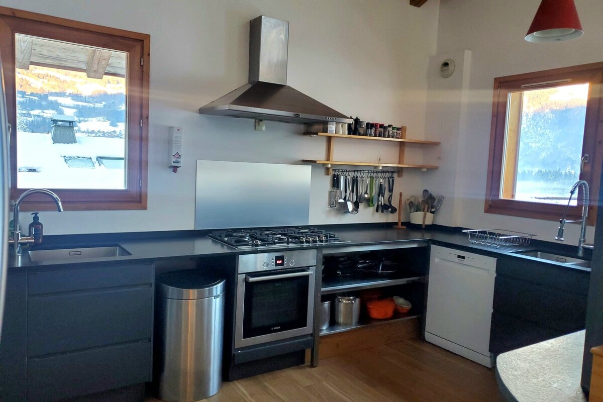 Apartment La Terrasse offers an additional three bedrooms and two bathrooms, making it a perfect option for guests seeking more space or privacy. With its own fully equipped kitchen and cozy living area, it provides a self-contained and comfortable space within the property. Step outside to a second hot tub and unwind while taking in the beautiful mountain surroundings.