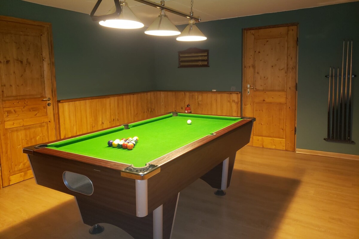 - UK TV. Separate games room with pool table. Wi-Fi. Honesty bar (winter only). 2 x outdoor hot tubs and sauna. Climbing room and gym. Drying room. Ski room. Shuttle service to and from the main lift station. Wood burner in the sitting room and geo thermal heating.