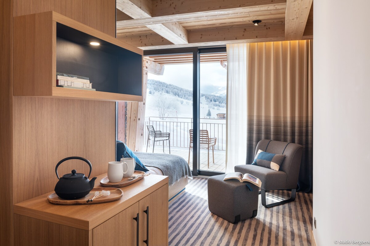 The Mille-8 chalets are built on the former tennis courts above the resort centre. They offer unrivalled panoramic views of the mountains and across the main Tarentaise valley. The large picture windows bring the alpine scenery inside the properties so that guests will feel immersed into a winter wonderland of sun and snow.