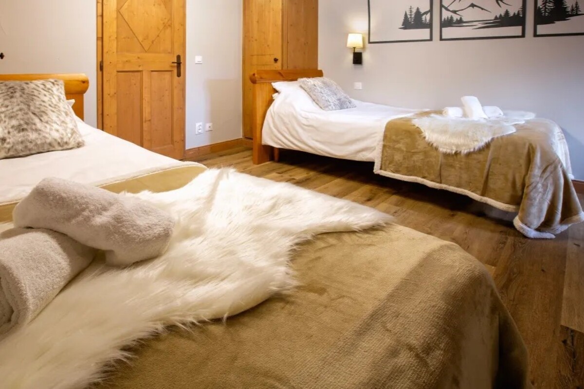 Chalet Alouette in Arc 1950 is a high quality three bedroom chalet apartment situated in the 5 star Auberge Jérôme Residence right in the heart of the resort. The ski slopes are right outside the residence's door so you are in a ski in and ski out location and the shops and bars are just a stone's throw away.