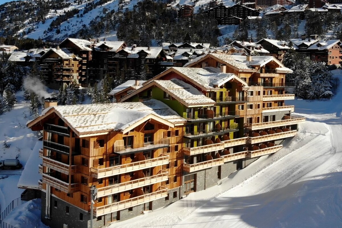 The exciting Hameau des Oursons development (which opened for the 2021-2022 winter season) consists of a five floor 30 bedroom hotel, Bear Lodge, and 12 luxury chalet apartments. The hotel bedrooms are on the 2nd and 3rd floor and the restaurant is located on the top 5th floor with fabulous mountain views. There is direct piste access from both the 3rd and 4th floors and the 1st floor of the building hosts the spacious bar and lounge area; spa with pool, hot tub, steam and sauna & gym.