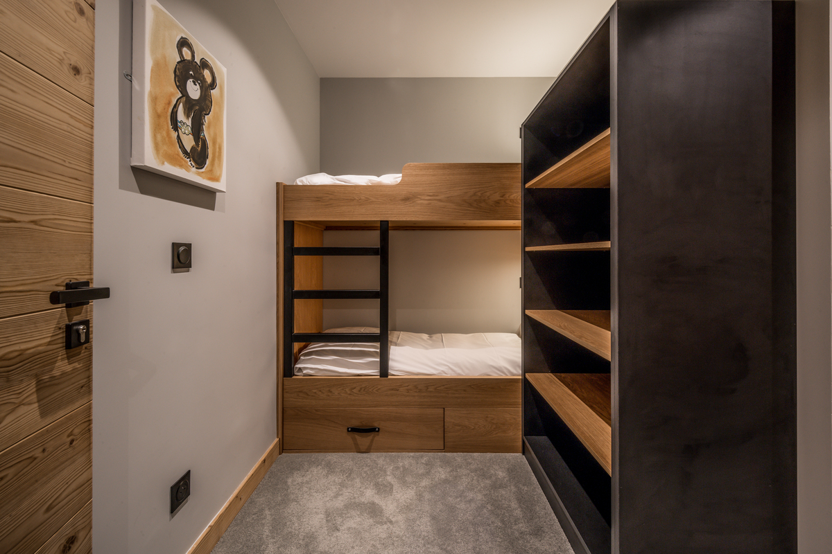 One of 12 new apartment chalets in the piste-side Hameau des Oursons development in Arc 1950. Guests have access to the cinema room, bar, indoor pool and spa facilities of the 30 bedroom Hotel Bear Lodge which is contained within the development. Enjoy your own private catered apartment within a luxury ski in ski out hotel.