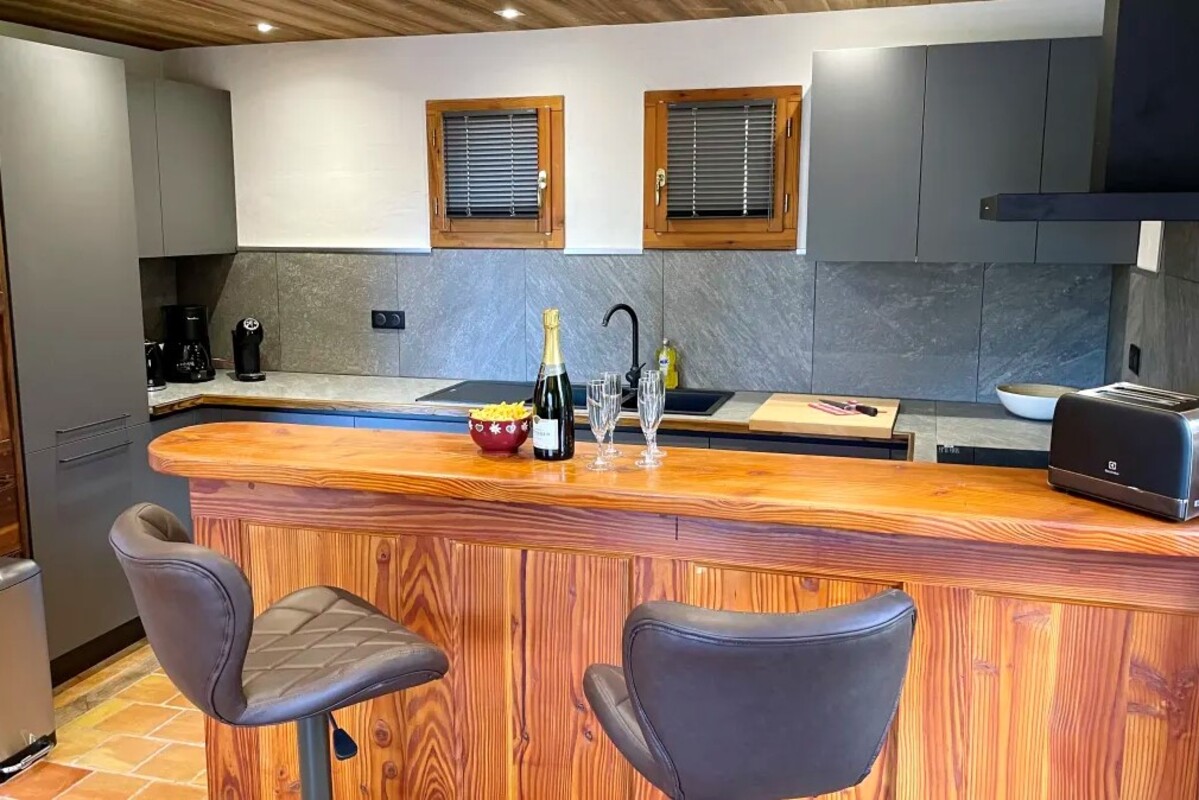 Chalet Blanchot in Les Arcs is located in the Plan Peisey area of the resort, just 150 metres from the ski hire shop and the village centre. Whilst the property is not ski out, guests can ski back to the chalet down a blue run at the end of the day. Of a morning, there is a new chair lift 50 metres away otherwise the Vanoise Express which links La Plagne to Les Arcs is a 400 metre walk from the chalet. Guests can also enjoy delightful views into the valley and across the mountains from the open plan lounge and dining area.