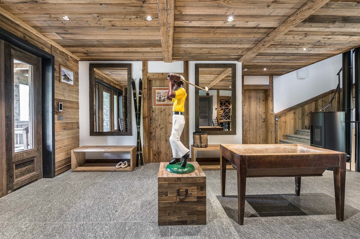 The ground floor offers a large ski room with boot warmers, a garage, cellar and laundry room. The huge living area is located on the first floor and is both spacious and light. On this floor there is a TV lounge, a reading room with a baby grand piano, a dining room and a semi-professional kitchen that has sliding doors to separate it from the rest of the chalet if desired. On the same level there is a large terrace area with outdoor seating offering magnificent views across the resort and beautiful Meribel valley. The bedrooms all have en-suite facilities and TV, and there is a double bunk room which is perfect for children.