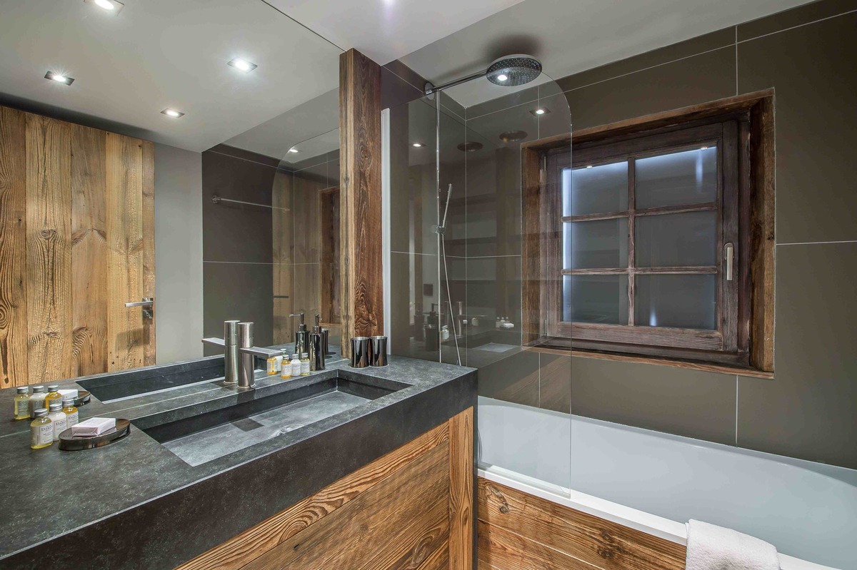 The ground floor, where you enter the chalet, has 2 of the 5 bedrooms. There is one double bedroom with en-suite bathroom and TV and one double bedroom with TV and cupboard space. There is also an additional bathroom and wc on this floor. Down the stairs into the basement there is one bedroom with bunk bed sleeping two. The spa centre with sauna, hammam and shower and ski room with boot heaters is on the basement level complete with laundry facilities.