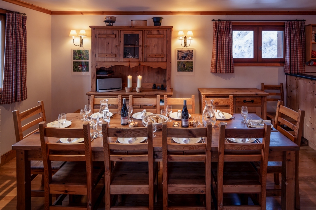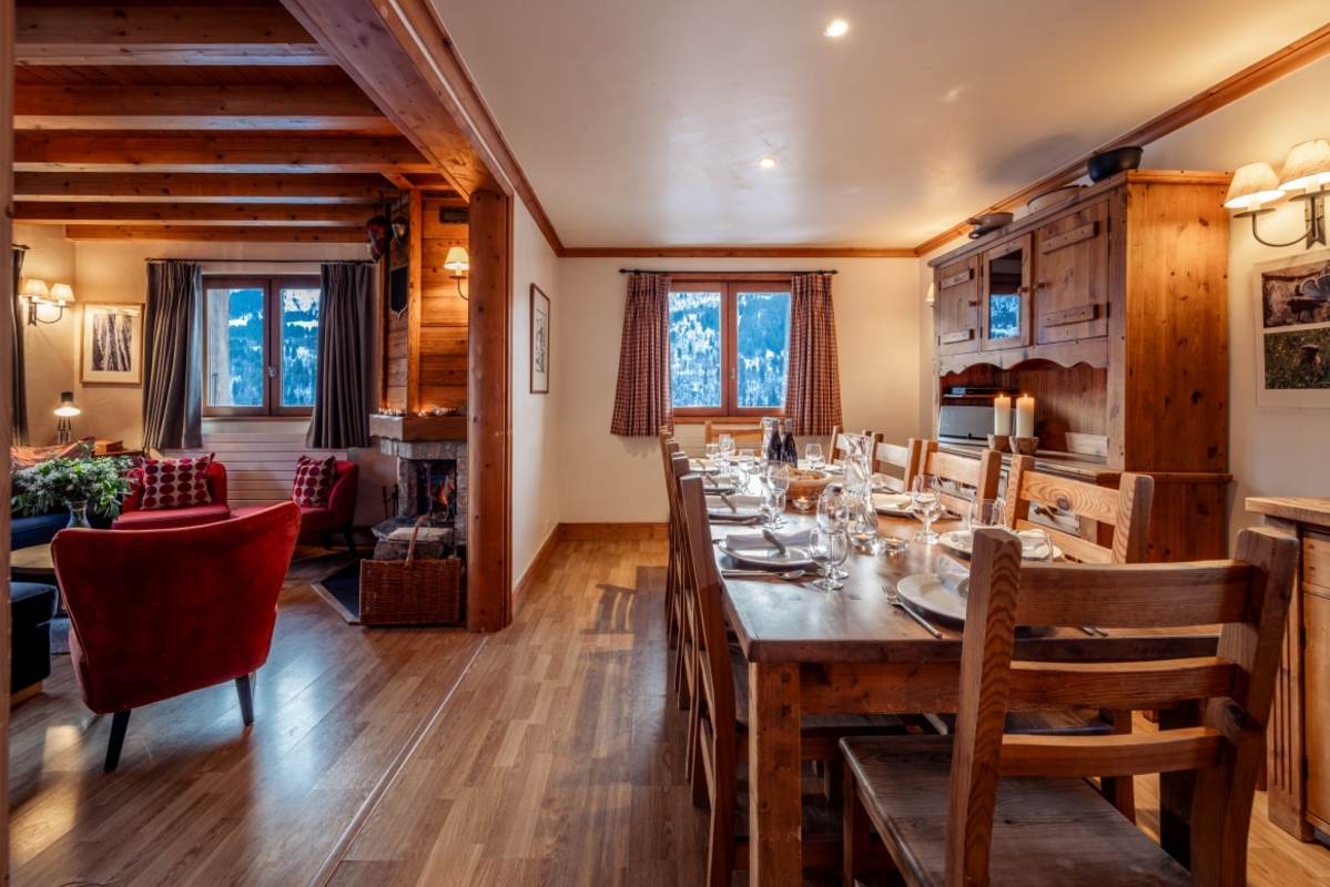 This lovely property is a delightful traditional chalet set within a quiet cul-de-sac and with its own big garden. It has a lovely living area, comprising of comfortable and cosy living room with two separate sofa areas, an open log fireplace and piano. There is also a lovely large sun terrace (perfect in spring for sunbathing and al fresco lunches), an open plan fully equipped kitchen and generously sized dining area with an island separating it from the kitchen.