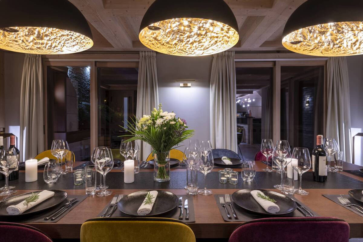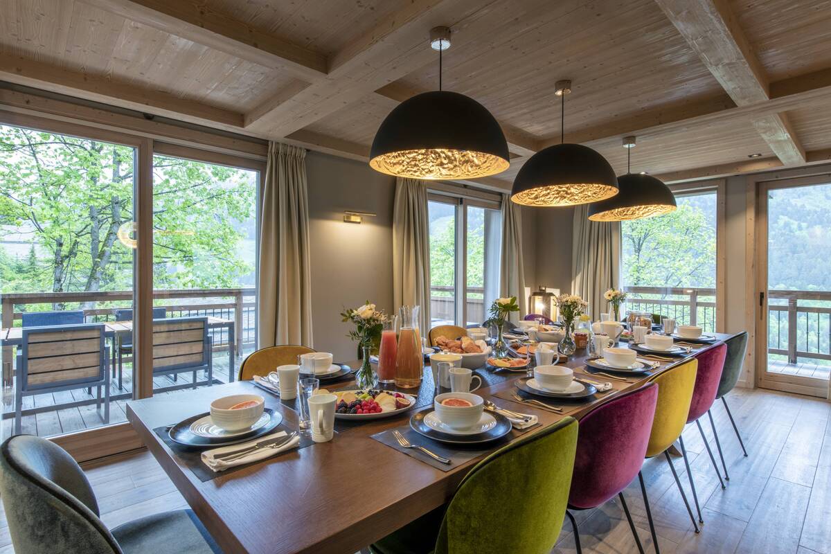 Most of the floors have lovely west facing balconies with views across the valley. On a sunny afternoon sun floods this high-grade property with lots and lots of sparkling mountain light. The double height main sitting room is fitted out with lots of comfortable sofas and the views from here towards Mont Vallon are truly spectacular.