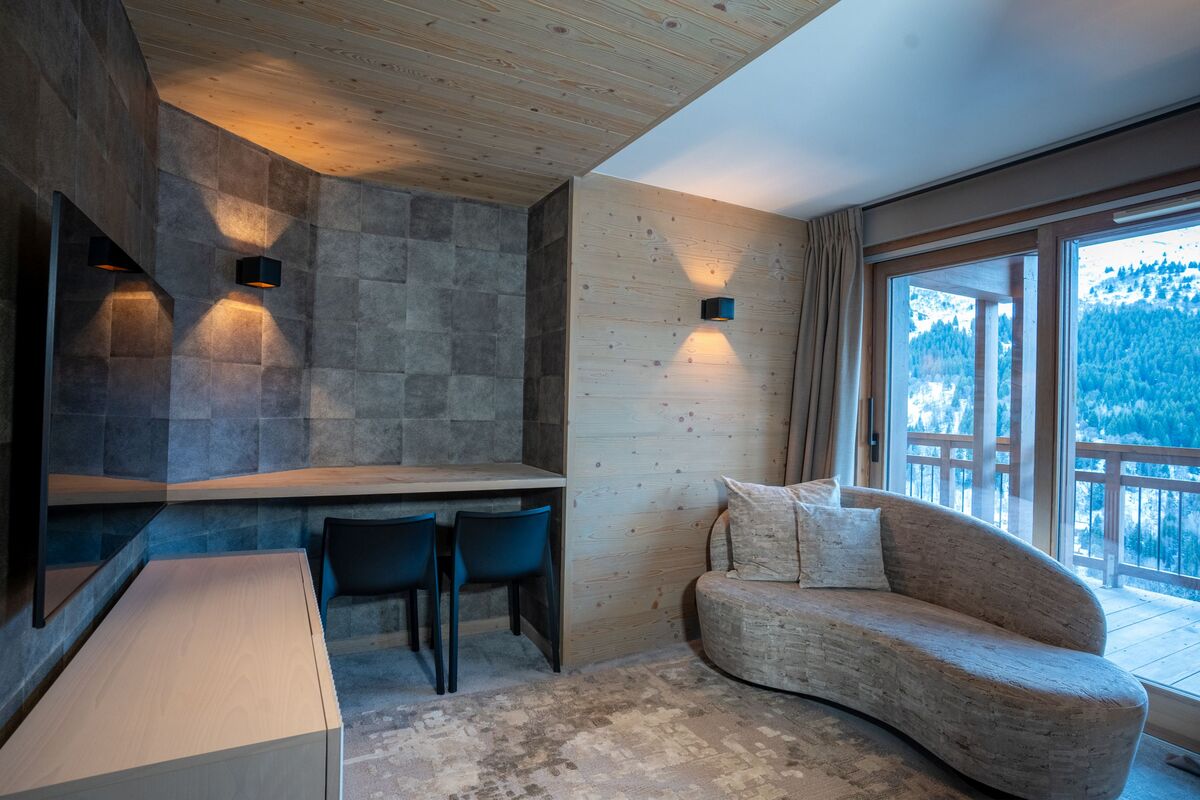 The Tueda apartment is located in Meribel's former Marie Blanche hotel which was converted in 2018 to create several luxury apartments. Located on the delightful 'back road', which winds up the hill behind the tourist office and next to the home piste, the Marie Blanche development has stupendous views over the resort and across the Meribel valley. The shops and bars of popular Meribel 1600 are just a two minute walk in one direction and the edge of the Doron piste is just a two minute walk in the other.