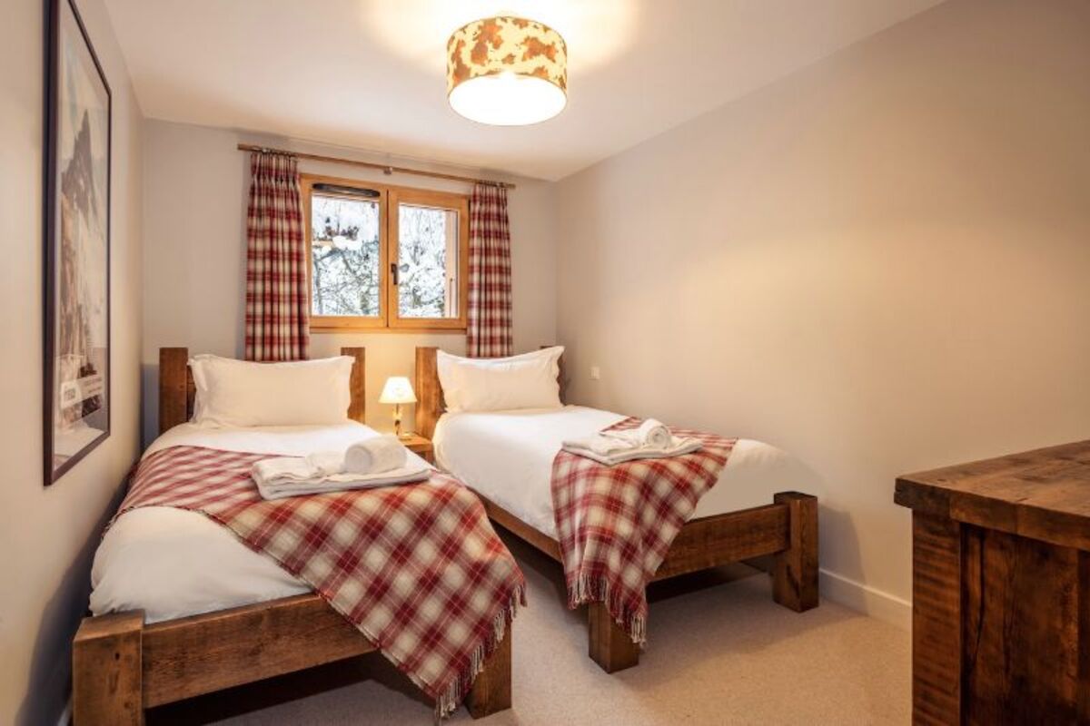 Most of the bedrooms are generously sized and three of the rooms have en-suite facilities. There is also a large boot room with boot warmers and washing facilities with tumble dryer. Outside there is ample parking space and the chalet has a private garden for children to play in.