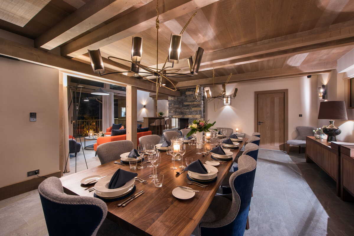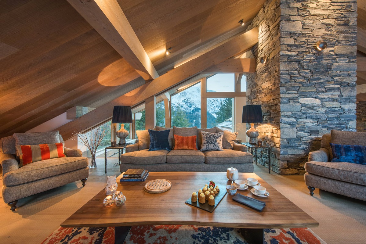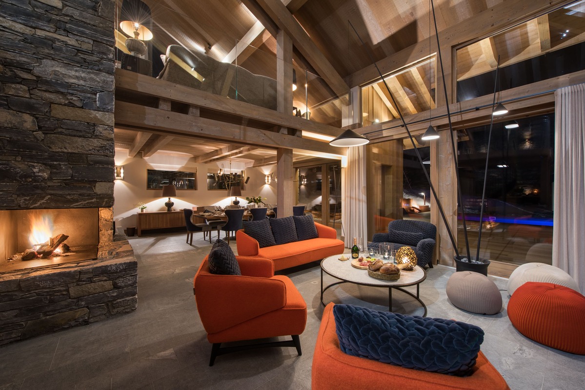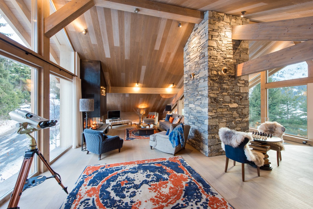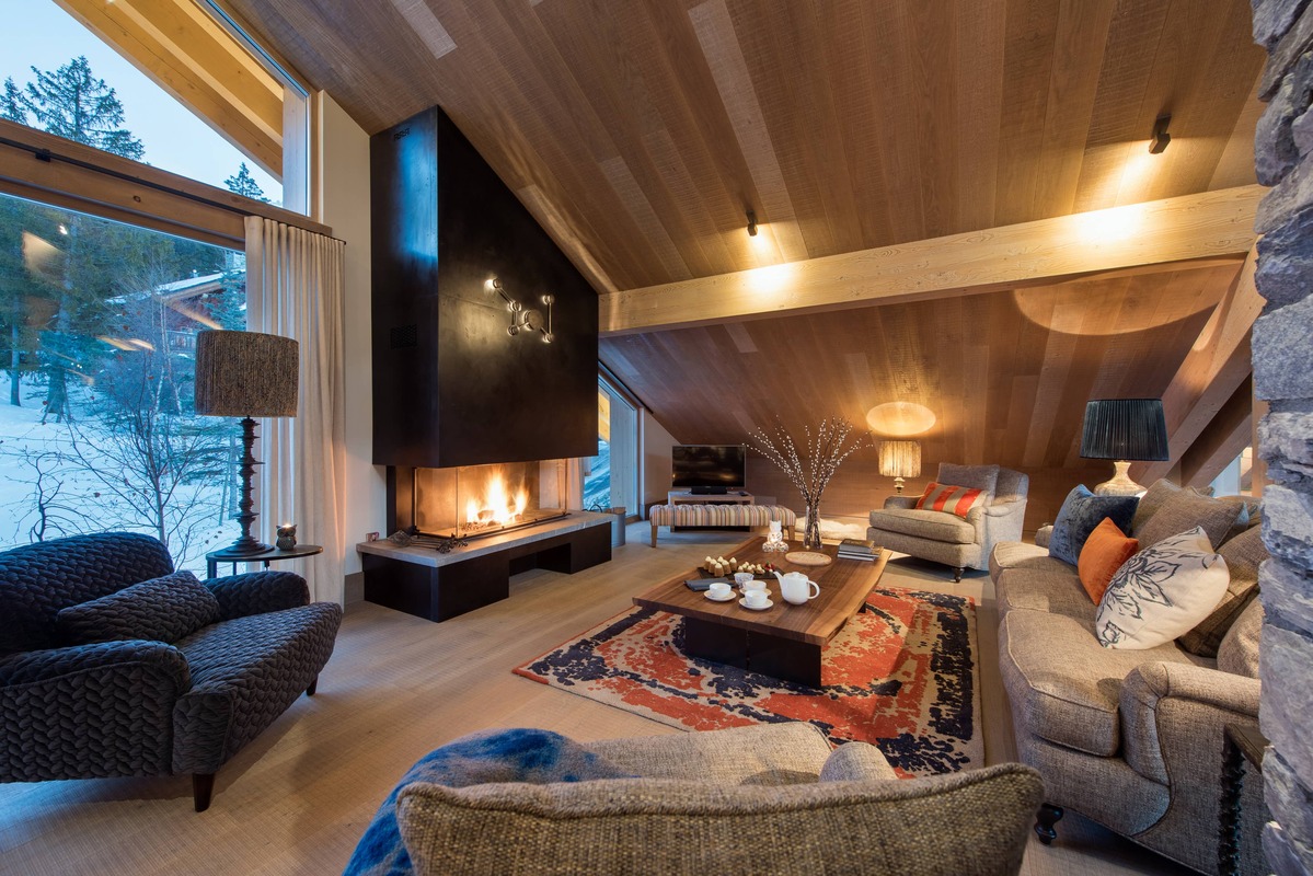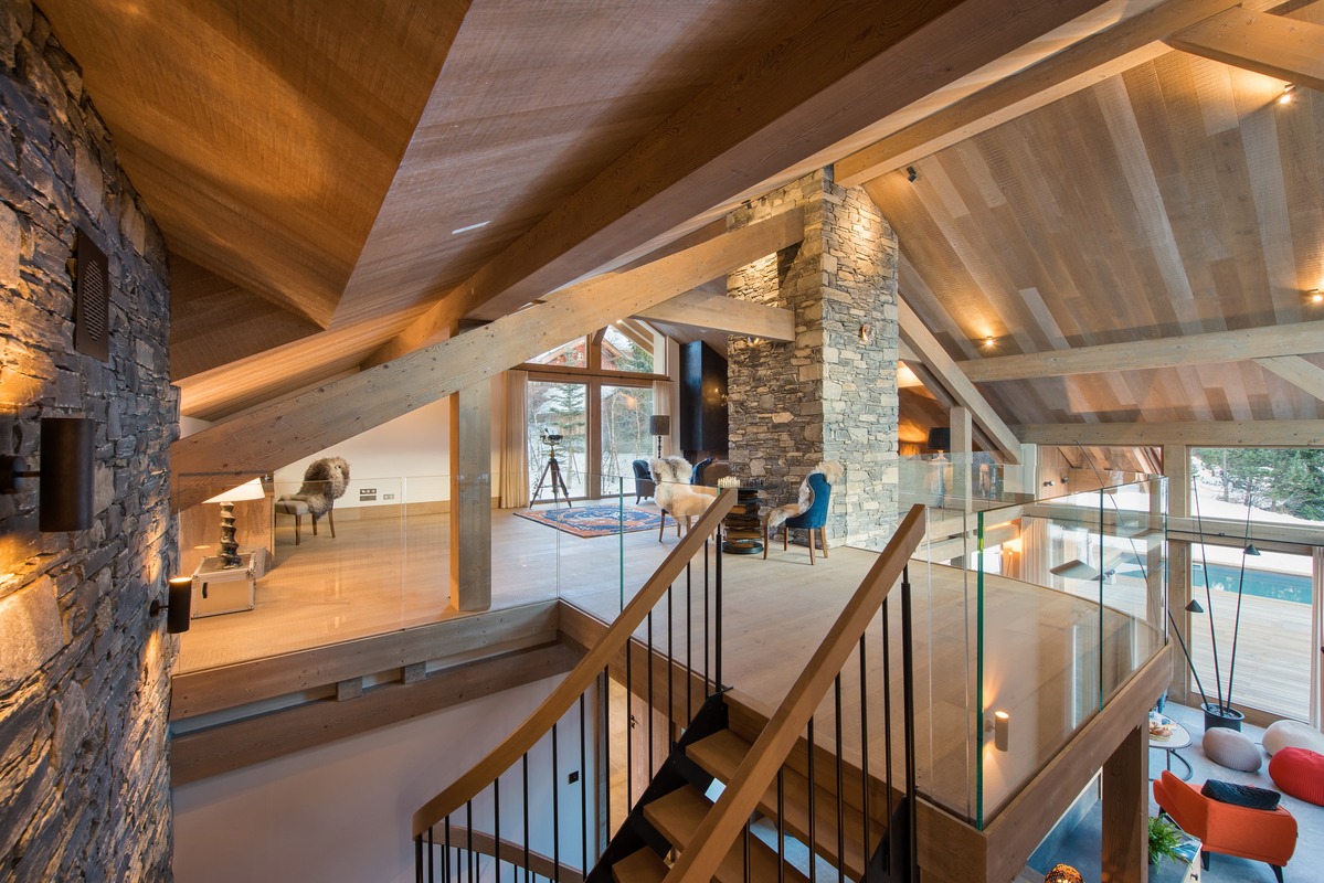 The chalet sleeps 10 adults and up to 4 children in extreme comfort. There are 4 principal guest bedrooms plus a quad children's bunk room and a nanny bedroom on the lower floor. The large entertaining spaces are spread over three floors. On the first floor is the huge open plan living and dining area along with access to the large terrace. The uppermost floor has a second sitting room area and a master bedroom suite with office, fireplace and large open bathroom.