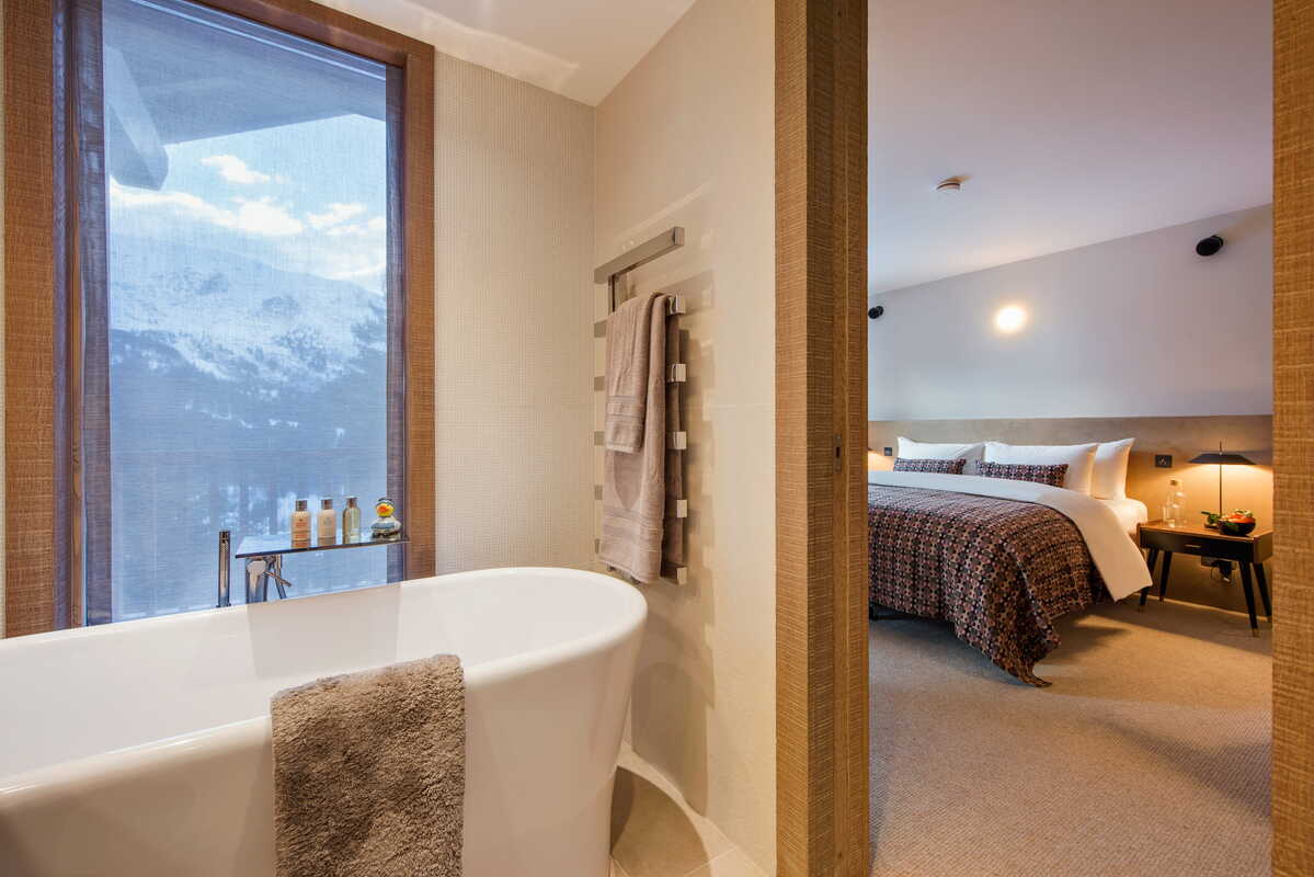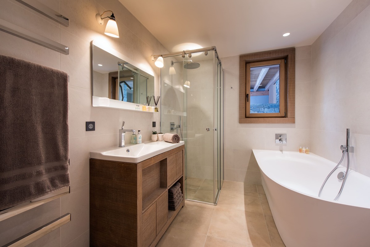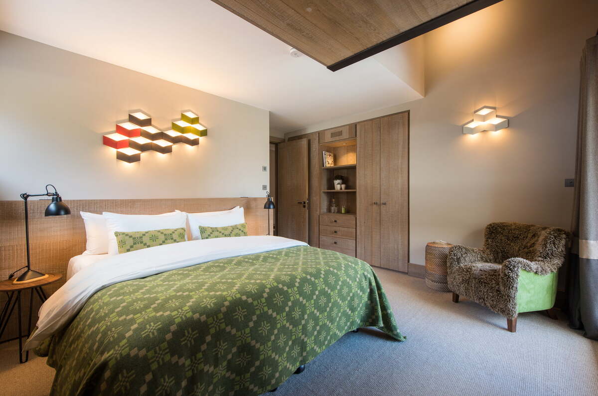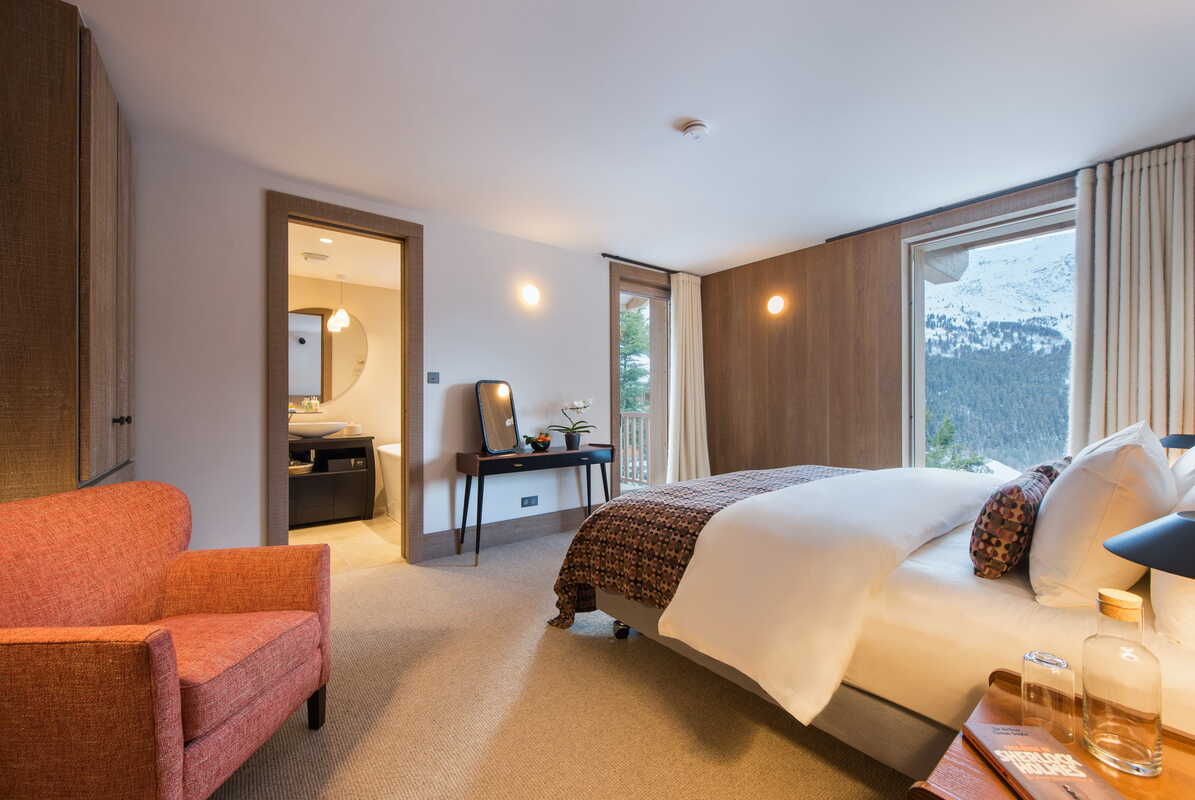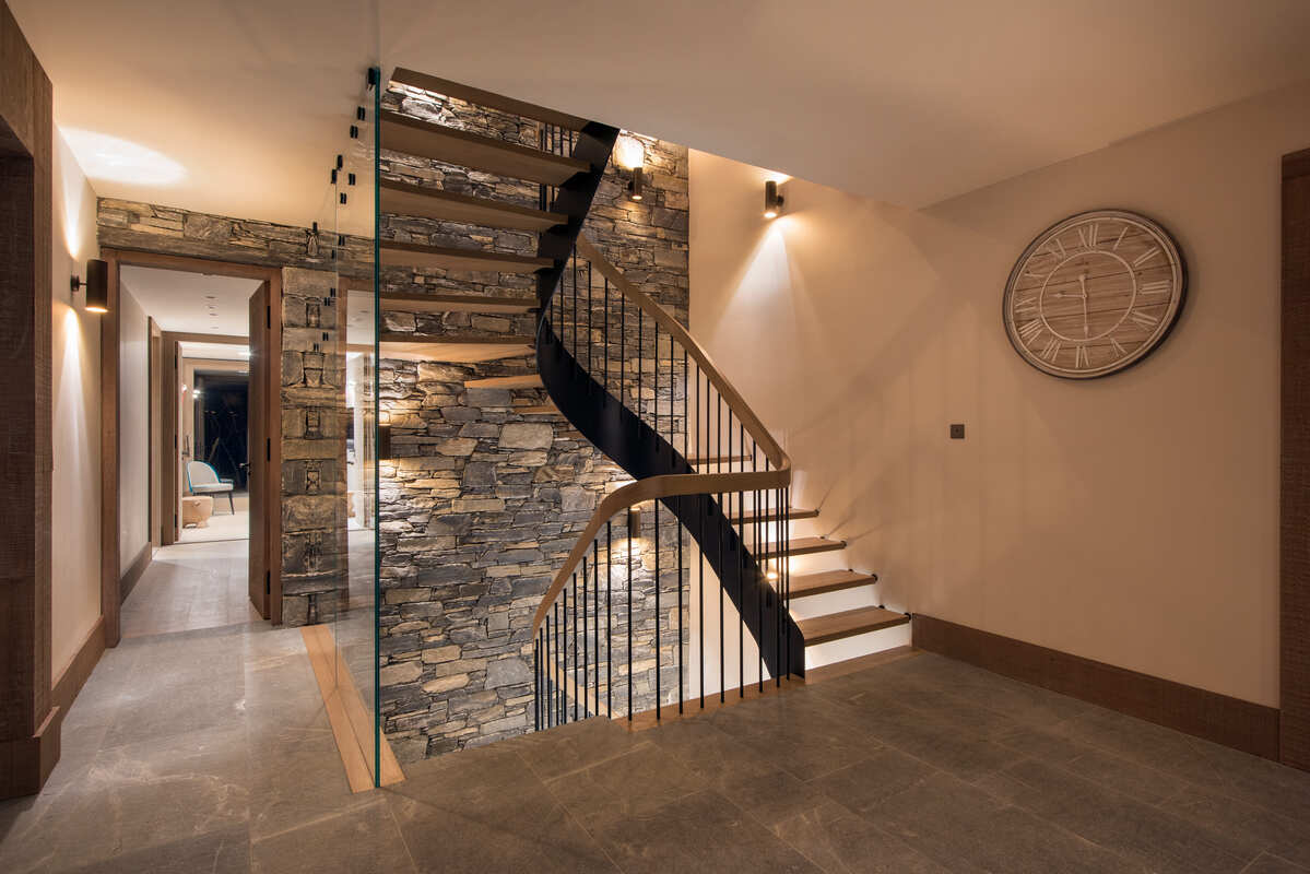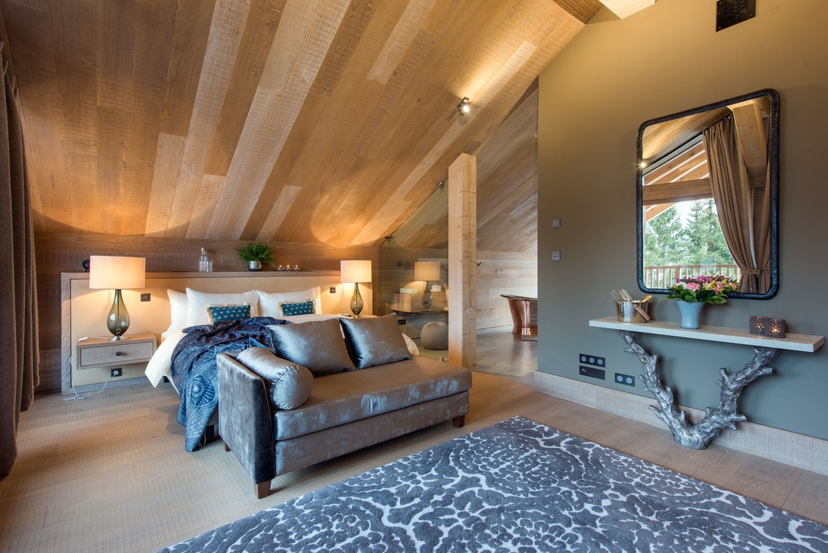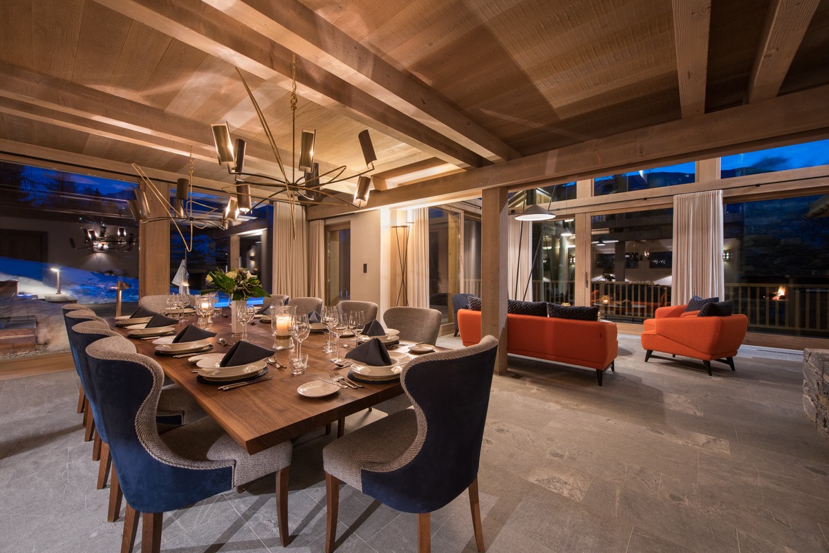 The chalet sleeps 10 adults and up to 4 children in extreme comfort. There are 4 principal guest bedrooms plus a quad children's bunk room and a nanny bedroom on the lower floor. The large entertaining spaces are spread over three floors. On the first floor is the huge open plan living and dining area along with access to the large terrace. The uppermost floor has a second sitting room area and a master bedroom suite with office, fireplace and large open bathroom.