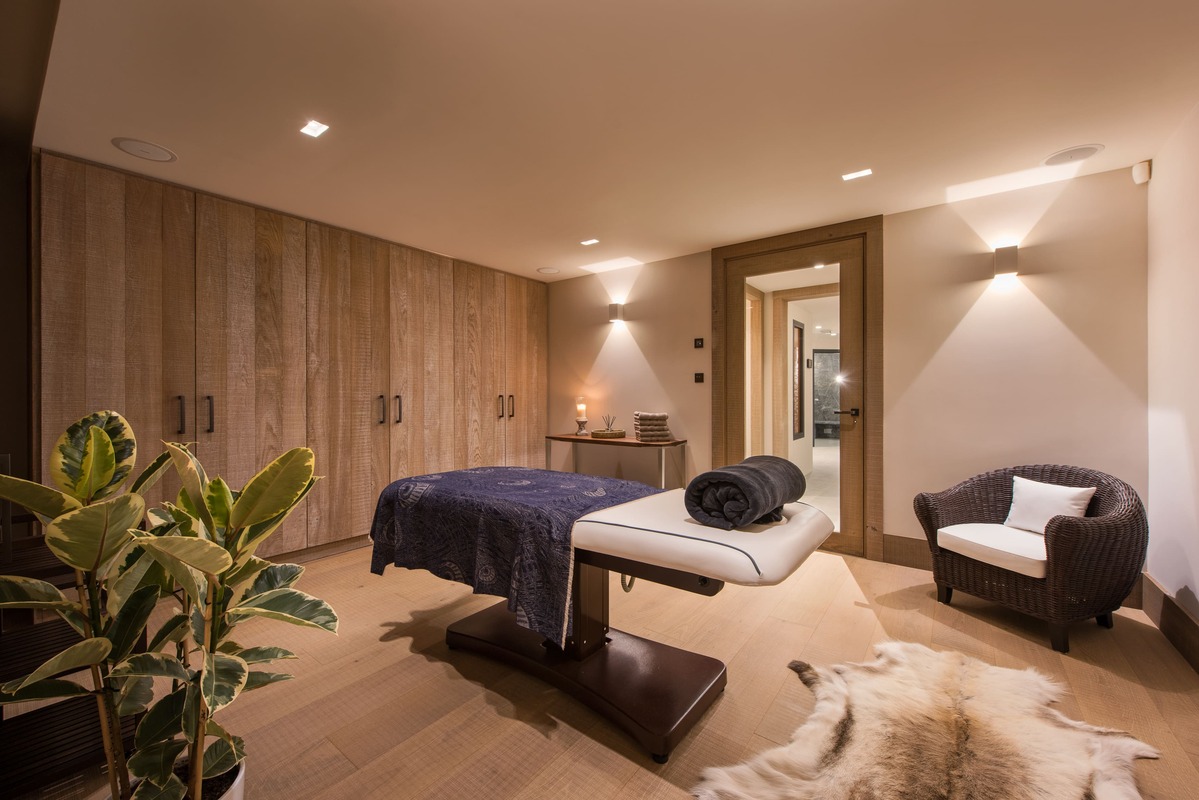 - Spa & treatment room, cinema, climbing room. Games room. Ski store