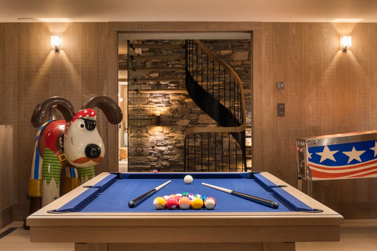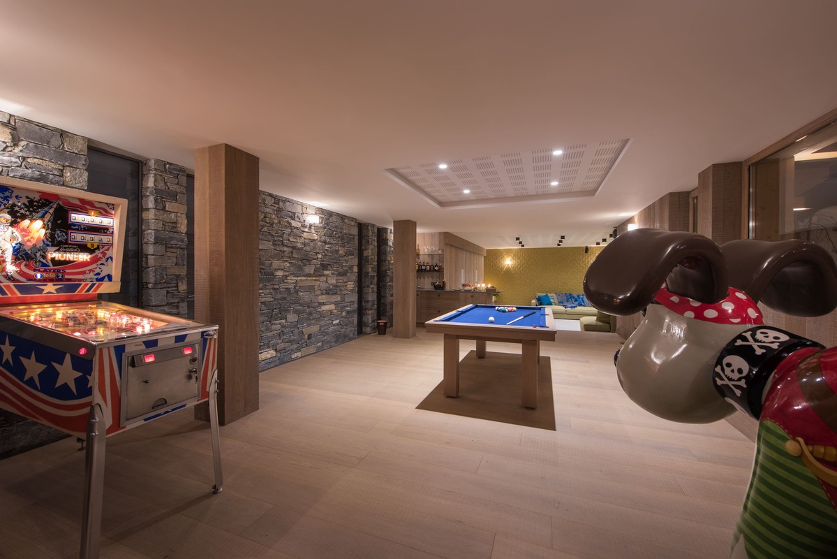 The chalet is superbly decorated with hardly any expense spared. There is a plush wellness spa that any luxury hotel would be happy to boast about with steam room, sauna, showers, relax area and treatment room. The games room is large enough for a pool table and pinball machine and this space opens onto the comfortably furnished cinema room with drop down screen.