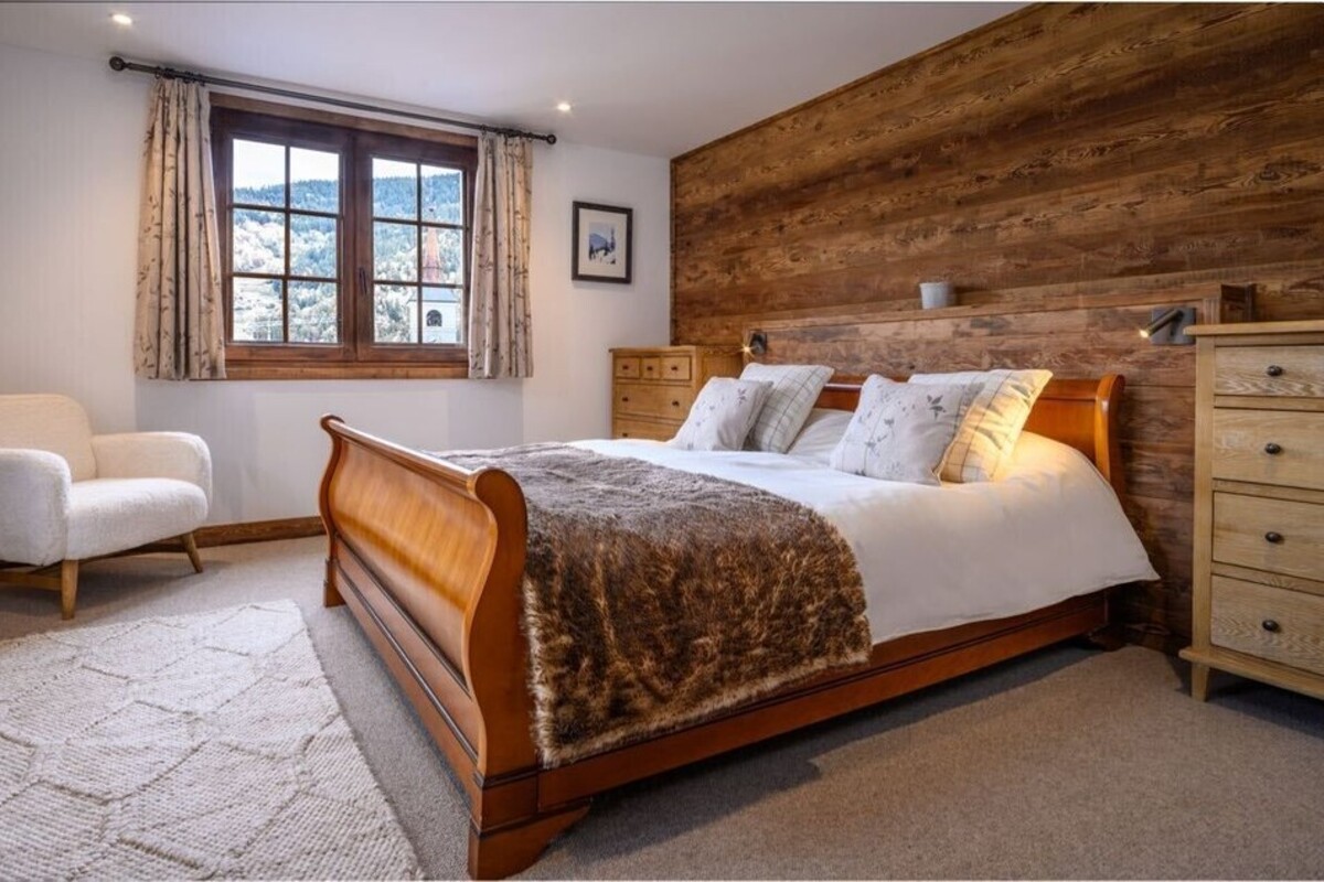 The Chalet Le Houx has two floors. The first floor is spacious and offers a light filled sitting and dining area with log fireplace and a separate, large and well equipped kitchen. There is also a bathroom on this floor. Upstairs there are four guest bedrooms and an additional bathroom. On the ground level there is a garage with plenty of ski storage space and outside there is a private garden area which is perfect for snowman making in deep mid-winter or sitting in to soak up the afternoon sun in March and April.