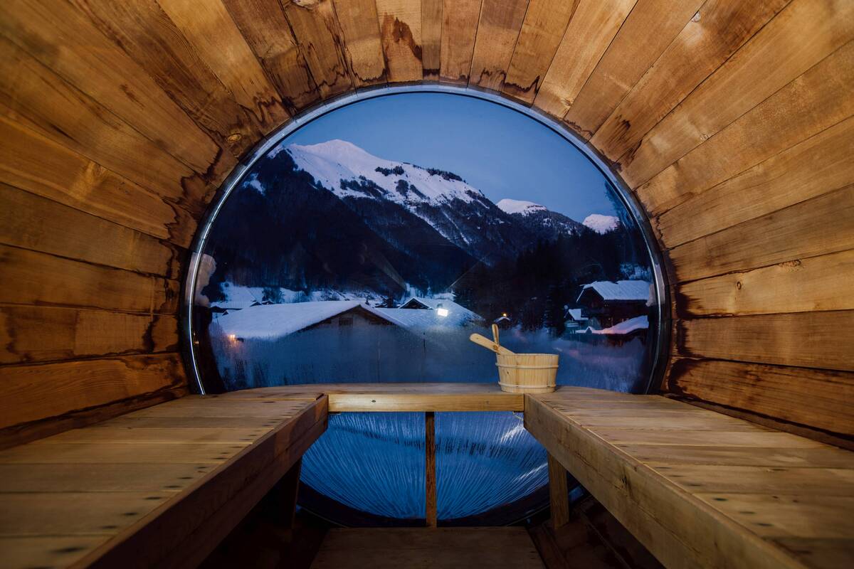 - Outdoor hot tub and 6 - 8 person outdoor barrel sauna. Chalet bar. Wi-Fi internet connection and UK Freeview TV. In resort shuttle service in two vehicles.