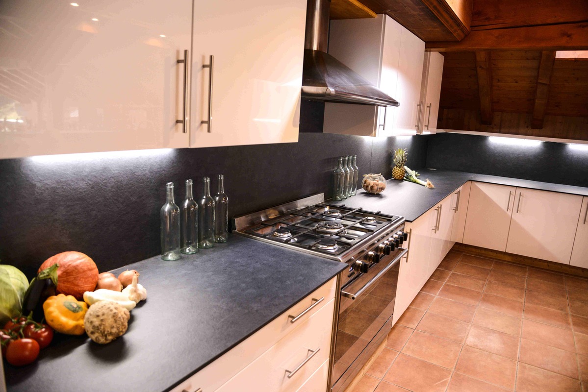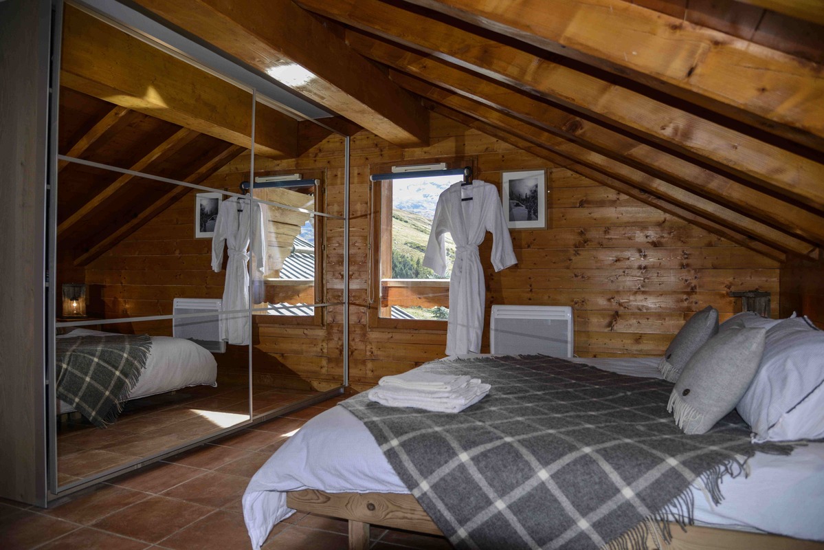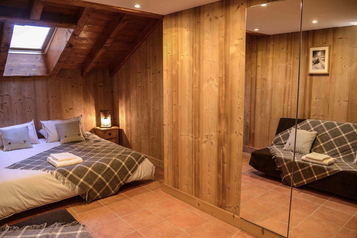 On the first floor you will find the large living area, with a beautiful central fireplace. There is a large balcony which you can access from the living room that overlooks the beautiful mountains and nearby pistes. There is also the kitchen on this level where your chalet host will be prepare your evening dinners.