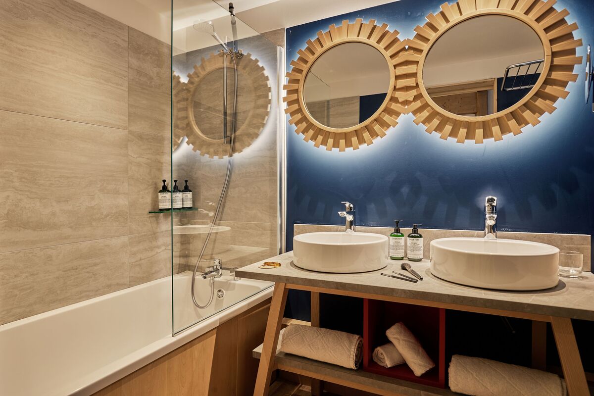 The hotel consists of two Savoy chalets with five floors with lifts, in a harmonious wood and stone construction.