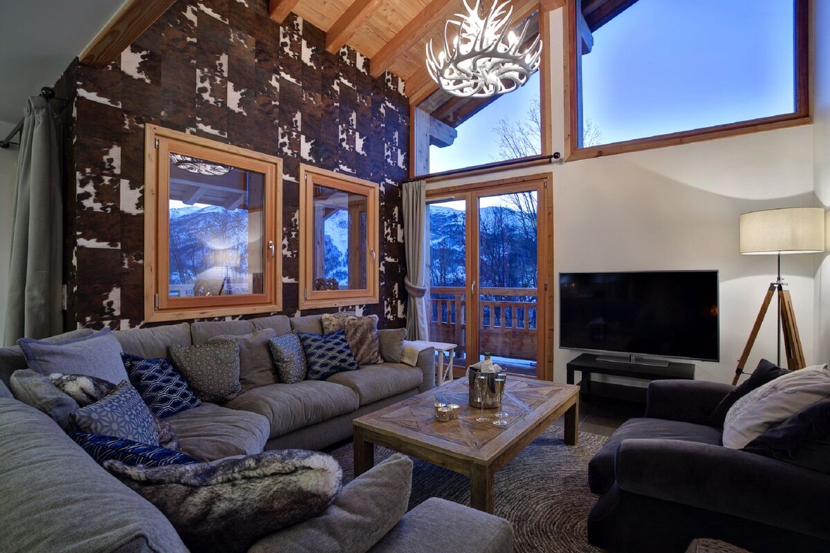 Chalet Aralia in St Martin de Belleville was completed in 2015 and provides eight to ten guests with modern alpine living. The contemporary colour palette uses neutral tones of brown and grey which matches the use of the natural building materials of stone and wood. Guests can relax in the comfortable sitting room areas with proper sofas and a glass fronted fireplace (the reverse side of this fireplace is seen from the dining area). The sitting room has a Smart TV which is equipped with British Satellite TV a quality music system