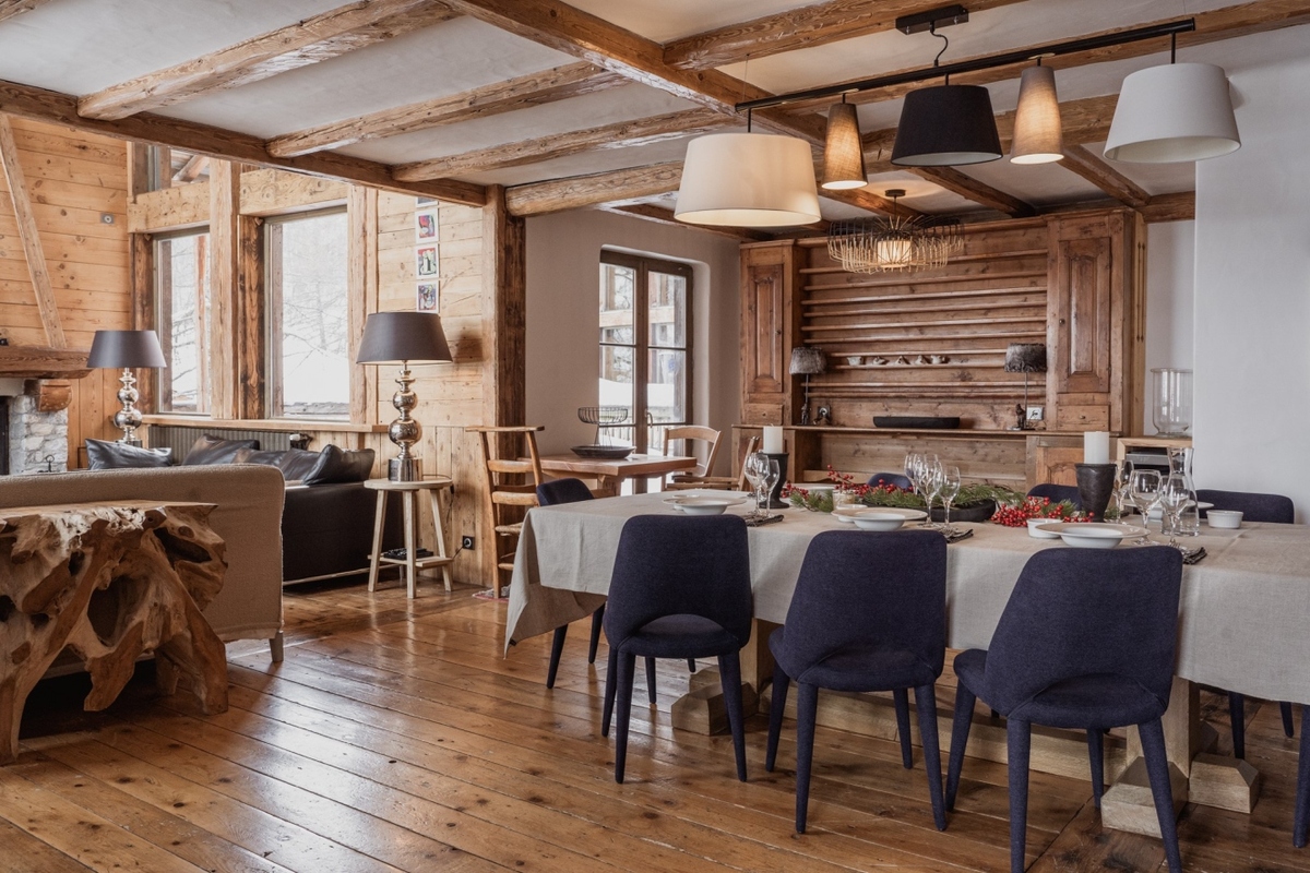 The living space is double height with huge windows making the most of the valley views and the open fireplace and large south facing terrace mean that you need never lack for warmth whatever the weather. The unique slate dining table is the perfect place to experience mouth-watering cuisine, while enjoying quality time in the company of friends and family.
