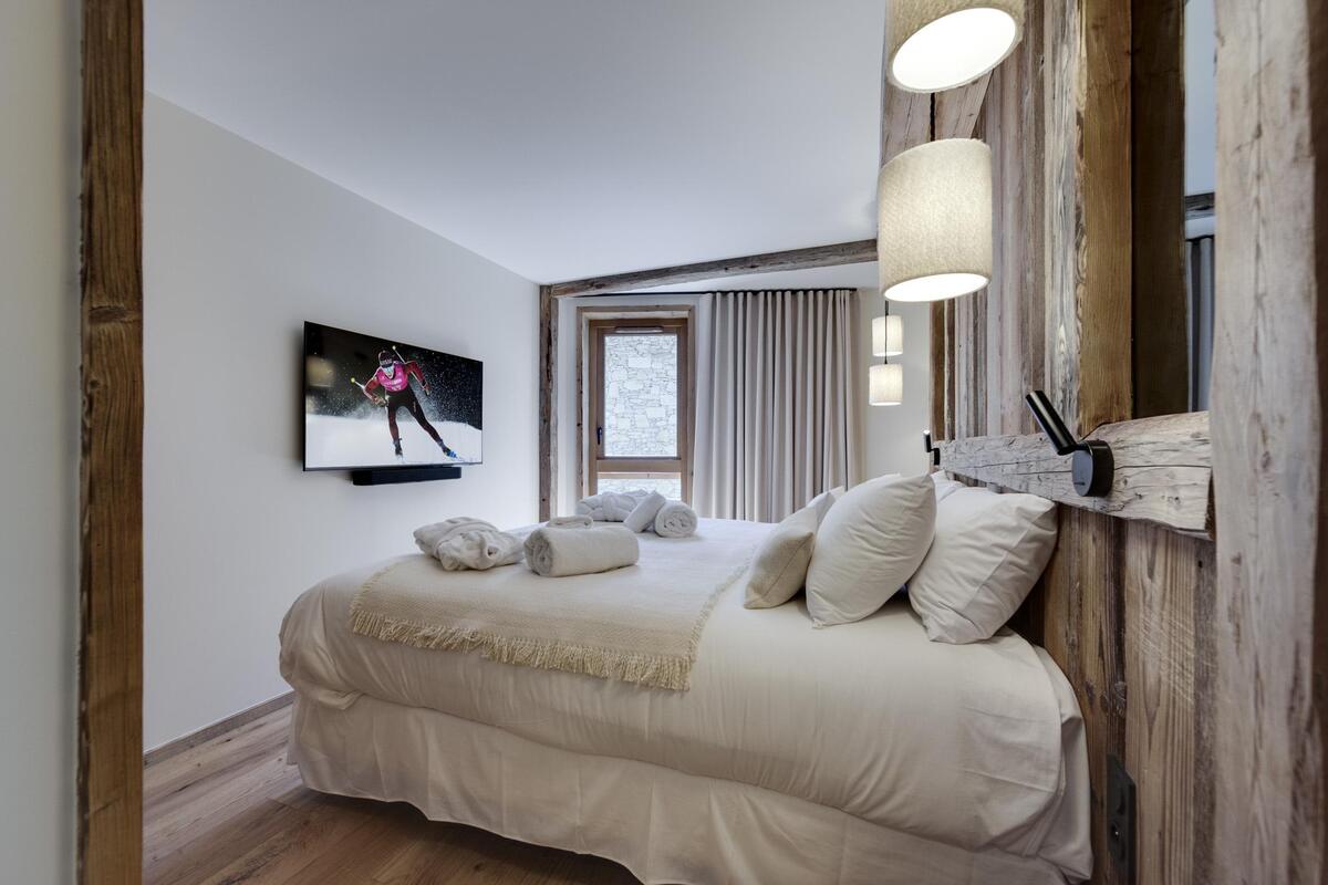 Apartment Arolay 3 is on the upper floors of the building and offers lovely south facing views over the rushing Isere River which flows through Le Fornet, bisecting the village into two halves either side of the valley. The lower floor of the property offers the indoor spa area with sauna and hot tub as well as four en-suite guest bedrooms. The upper floor with its vaulted ceiling and large glazing is dedicated to the open plan kitchen, dining and living area with glass-fronted fireplace.