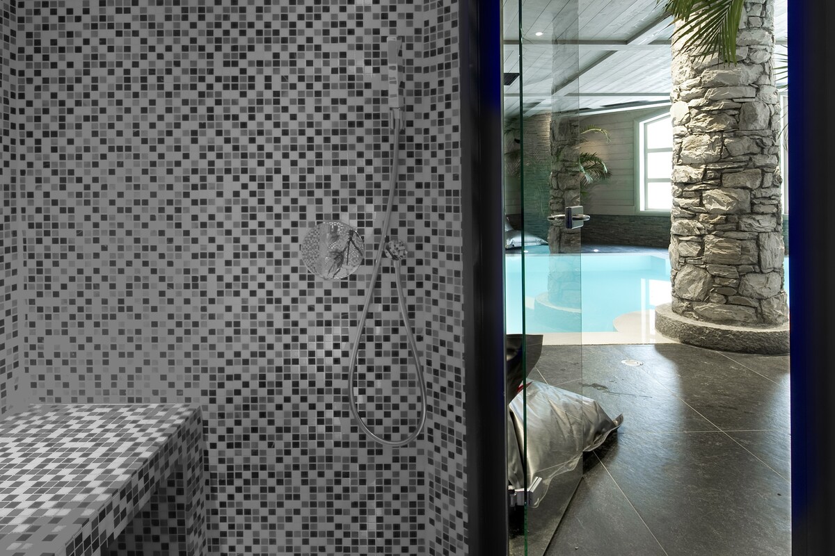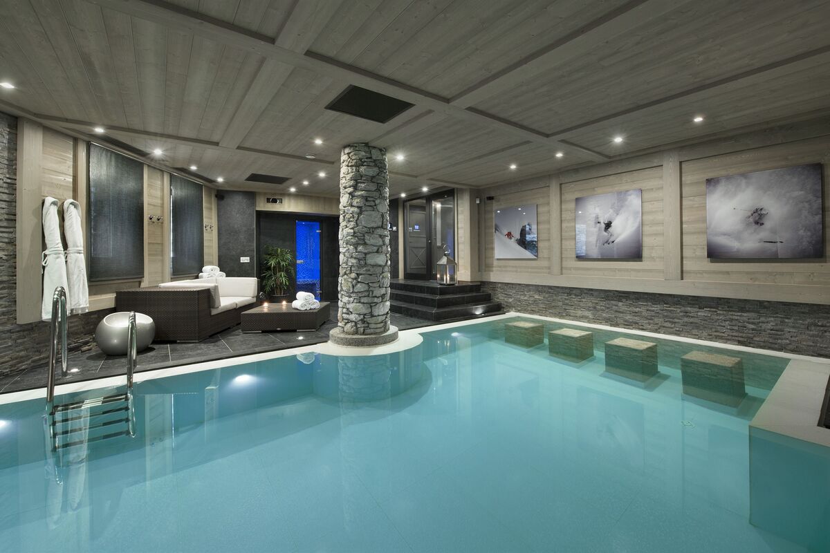 - Indoor swimming pool with jet stream. Steam room. Ski room with boot heaters. Bathrobes, slippers and towels. Nespresso machine. Cinema room. Apple TV, Wi-Fi. Stereo. Driver: One round trip per day between chalet and lifts.
