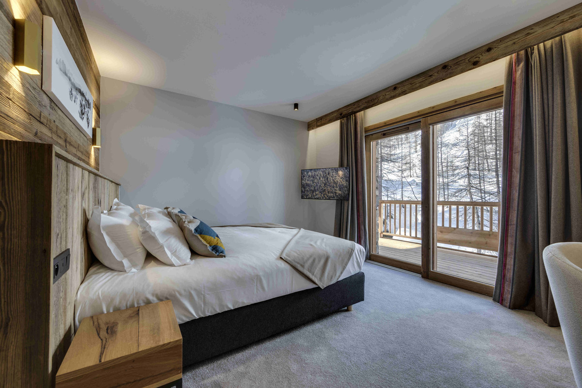 For many the Bellevarde Lodges tick all the right boxes. These large, semi-detached properties have a lovely spacious sitting/dining room with large floor to ceiling West facing sliding doors. These not only let in wonderful afternoon light but also give direct access to the large (often sun-drenched) deck and outside hot tubs. The piste that leads down to the resort centre and the main lifts runs directly behind the chalets - a short climb in ski boots brings you to piste level from where you can clip into your skis and gently glide down to the lifts. All the bedrooms are of similar size (so there are no arguments) and each has a modern en-suite bath/shower room. If there are any negative aspects one could mention the slightly narrow beds and lack of storage space. Apart from that the Bellevarde Lodges are hard to fault.