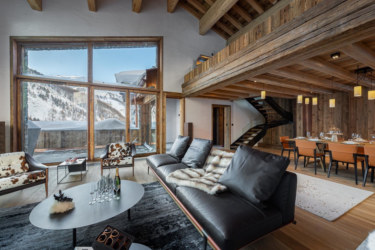 A spacious chalet with fantastic south facing views over the old village of Le Fornet. Easy 3 minute walk to the cable car station or why not whistle up the driver to take you into town. High quality, professional hospitality staff with chef, driver, butler and housekeeping.