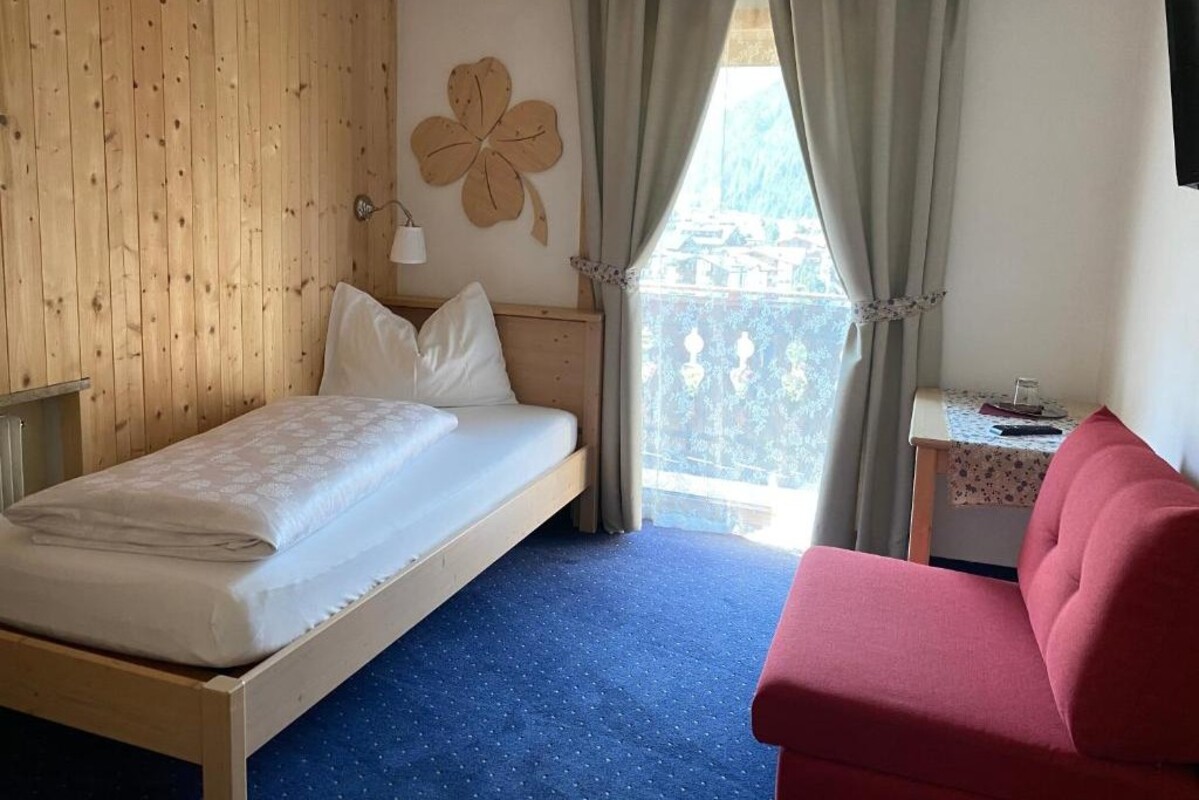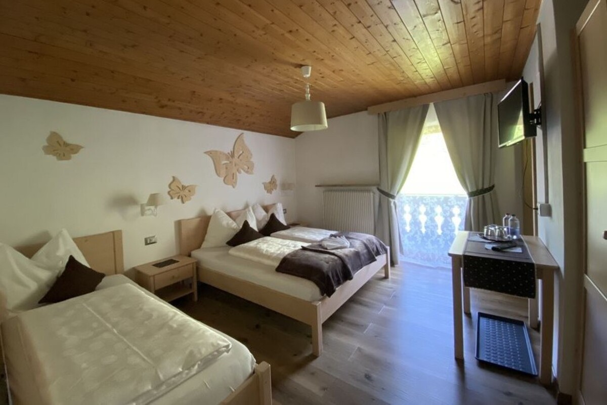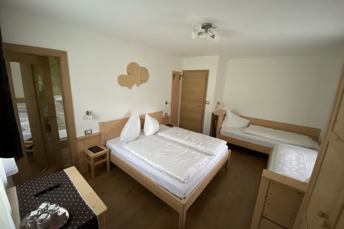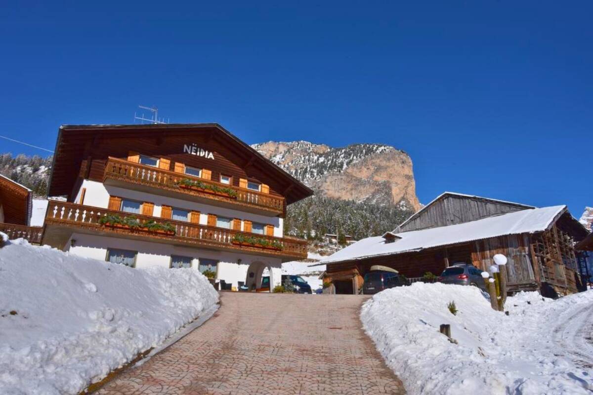 Chalet Neidia is ideal for groups and larger families, or bedrooms can be booked on an individual basis. With nine double rooms and two triple rooms, it can accommodate up to 24 guests. Each room is bright and tastefully furnished, featuring its own bathroom. Many rooms also offer a private balcony with stunning views of the snow-covered Dolomites, the perfect place to relax after a day of skiing or snowboarding.