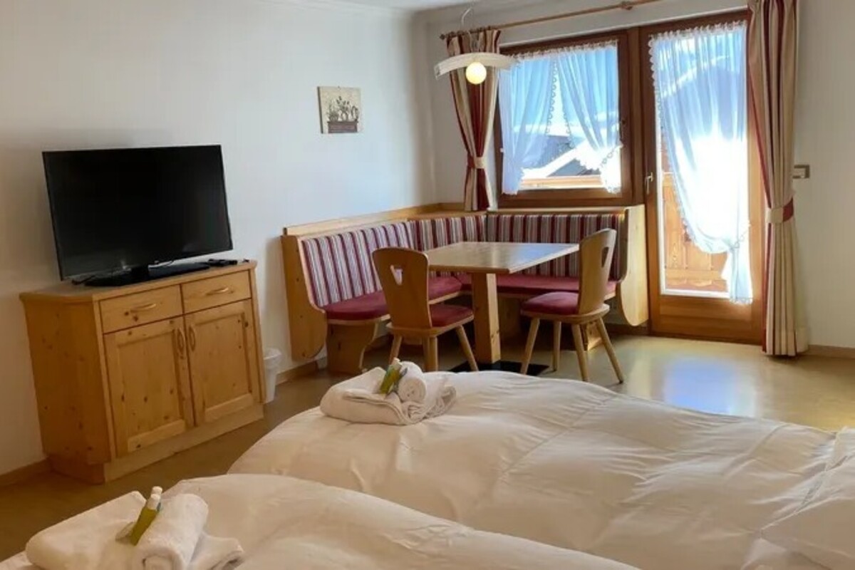 Finished in a traditional south Tyrolean style, the Soldanella accommodates 25 people in 13 en-suite bedrooms across four floors - many of which have the added bonus of a balcony. All bedrooms have been recently renovated and feature minimalist modern furnishings whilst the walls have been finished with a fresh wood panelling. This sleek chalet style continues into the spacious lounge room on the third floor which offers guests delightful views out over the resort. Lastly, there is a welcoming communal dining room which is perfect place to unwind for a few pre dinner canapés and an aperitif, before settling in for a three course evening meal with a healthy serving of wine.