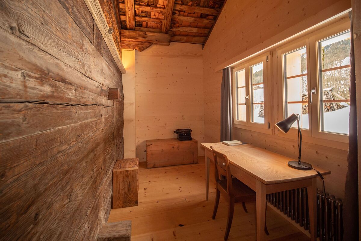 The interiors reflect classic 1960s and '70s mountain architecture, combining nostalgic charm with modern comfort. Enjoy two stylish bathrooms with walk-in showers or bathtubs, plus a convenient guest bathroom. A fully equipped open-plan kitchen flows into a spacious dining room for ten, complemented by a sitting room and a fireplace for après-ski relaxation.