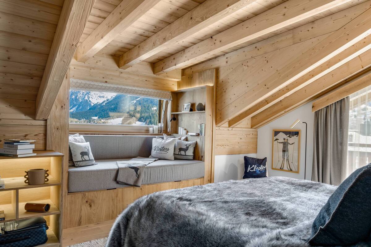The property caters comfortably for up to six adults and two children and each of the four bedrooms is a testament to luxury and comfort. The master suite occupies the penthouse's upper floor and is nestled under the eaves. Here, a delightfully charming window seat offers mesmerizing views of the snow-clad landscape, while the en-suite bathroom is equipped with both a lavish bathtub and a rejuvenating steam shower. The lower level houses the remaining three en-suite bedrooms, two of which boast direct terrace access.
