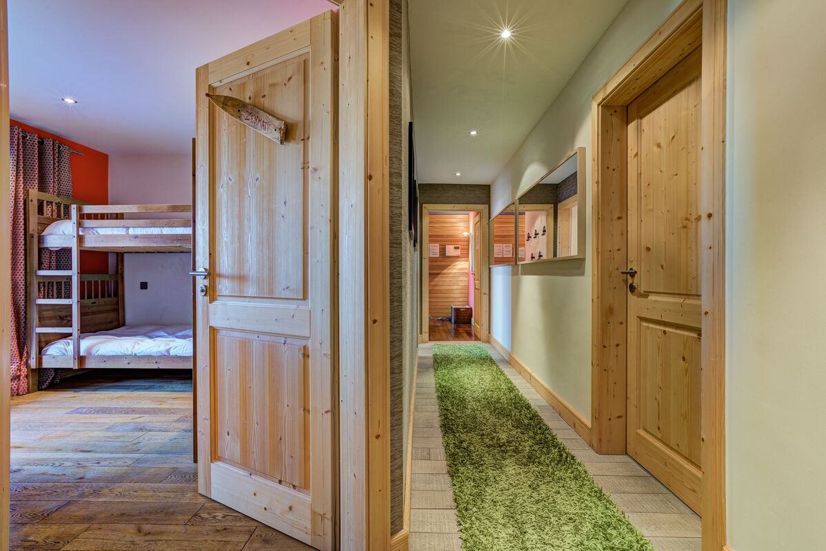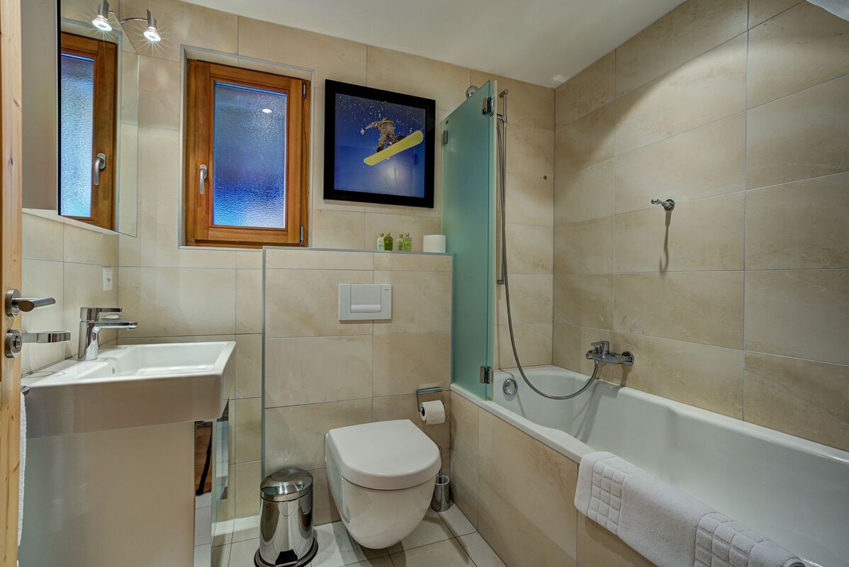 Zermatt, Klosters and Gstaad are three individually furnished Austrian twin bedrooms, each with an en-suite bathroom and wc having both bath and shower and heated towel rails. All rooms have masses of built in wardrobes space for bulky ski gear and a balcony. Powerful hairdryers are also provided in each room, as well as a safe. Every room has its own large wall mounted TV. The St Moritz bedroom contains 2 full-sized bunk beds ideal for children or adults who wish to share in addition to an en-suite shower room and wc.