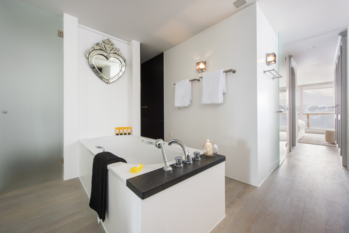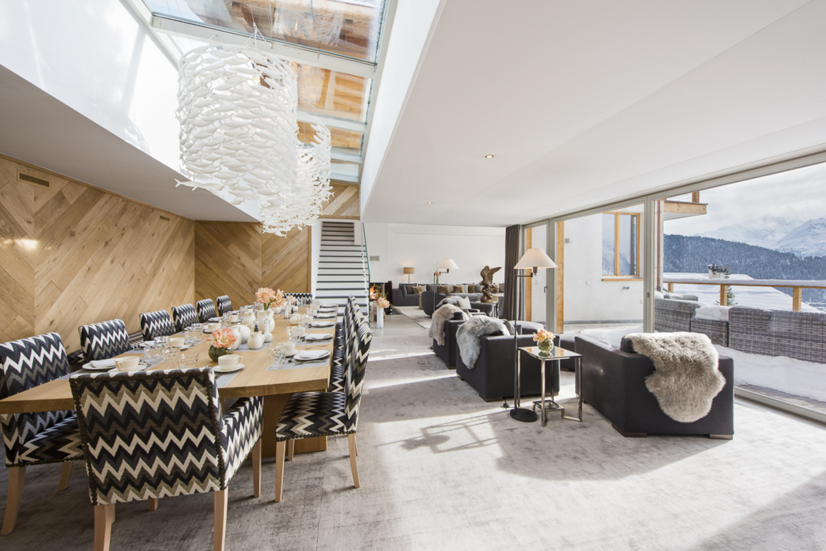 The Chalet Peregrine in Verbier is one of the resort's most prestigious properties. This 1,200 square metre stand-alone chalet has commanding south facing views over the resort centre and one of the most magnificent indoor private swimming pools in the Alps. The 25 metre pool is set on the 1st floor with draw dropping southerly views from its entire length through floor to ceiling glazing. In the spa area guests can also indulge in the steam room, sauna, plunge pool and relaxation area.
