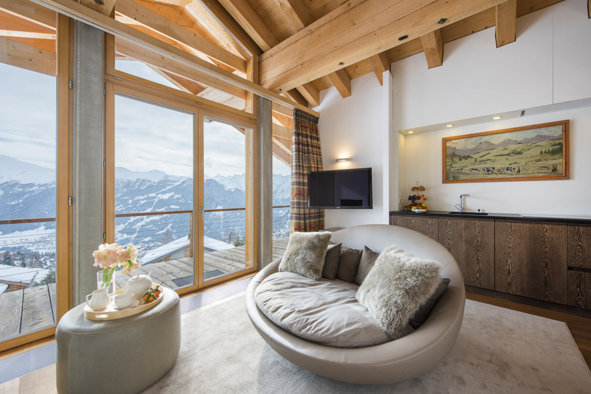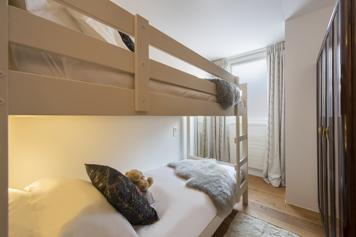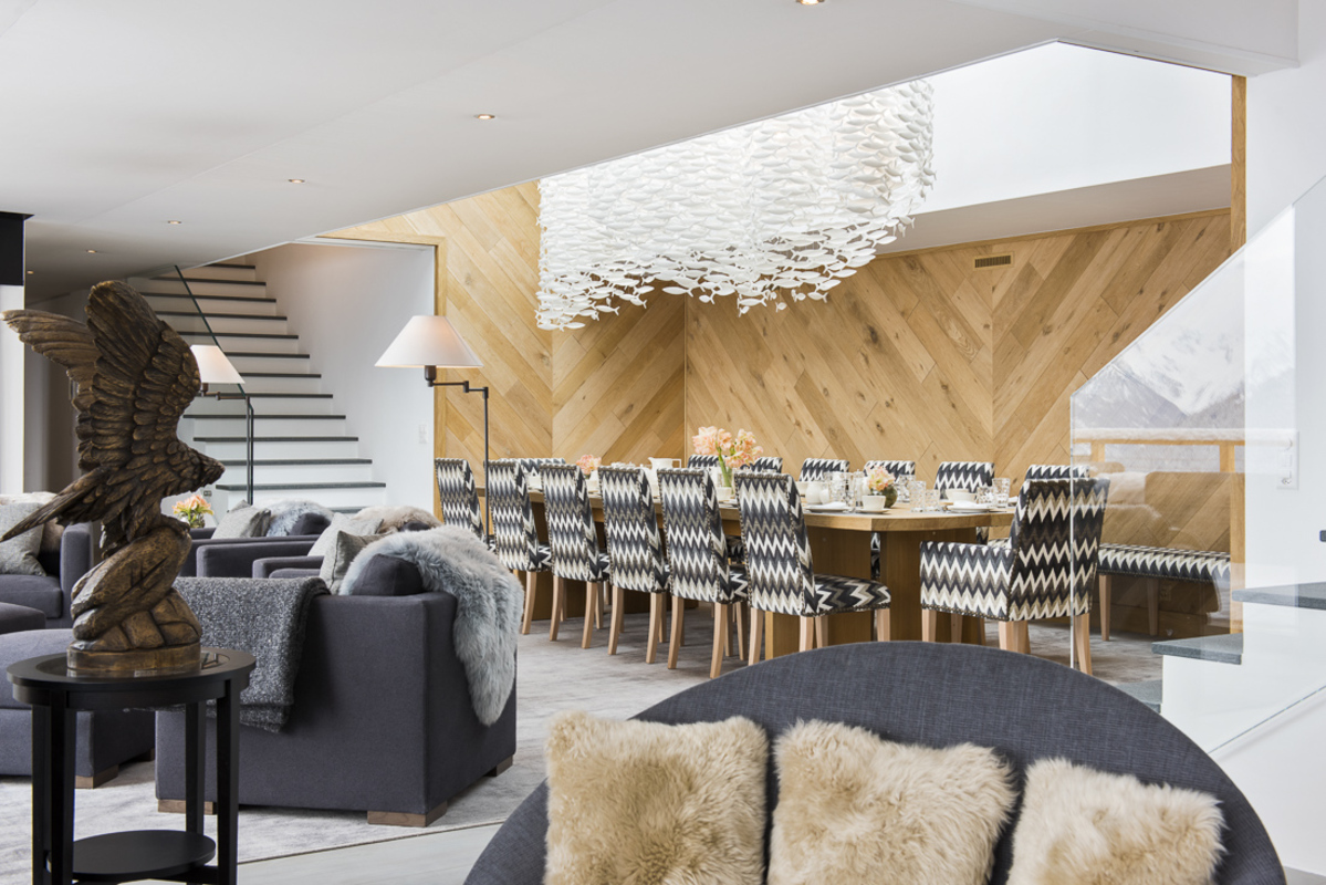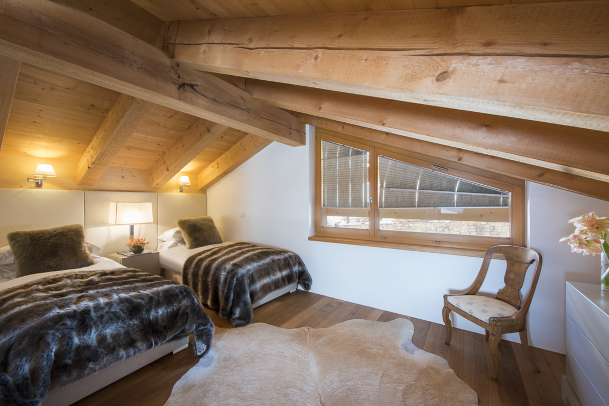 Chalet Peregrine's interior design is sleek and stylish, complemented by minimalistic but modern taste. There are exposed beams, rough stone walls and wooden parquet floors but the chalet's decor stylish is undeniably modern. Soft lighting and rich textiles in neutral shades of cream, grey, and earthy beige make for a warm, relaxing ambience. And every floor is bathed in pure mountain light from the south facing glazing. All the bedrooms are bright and airy with crisp linen, and sumptuous bath towels.