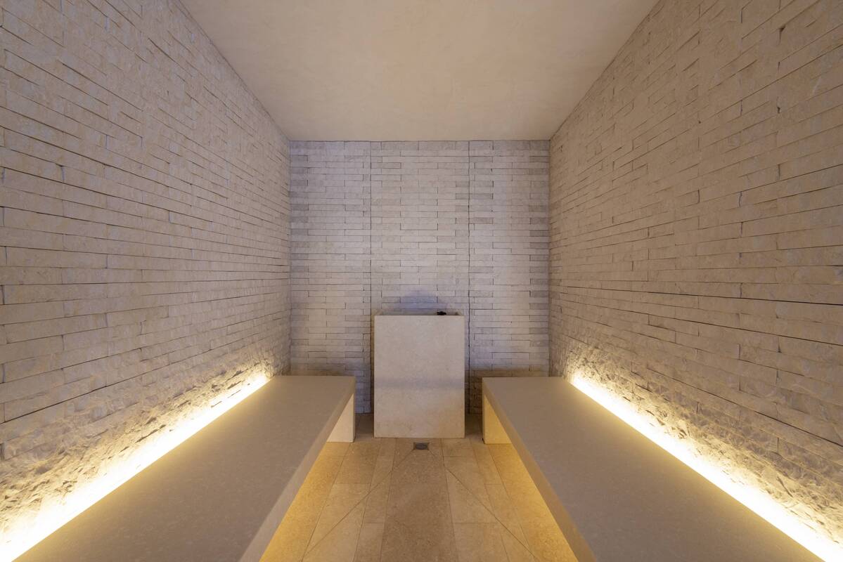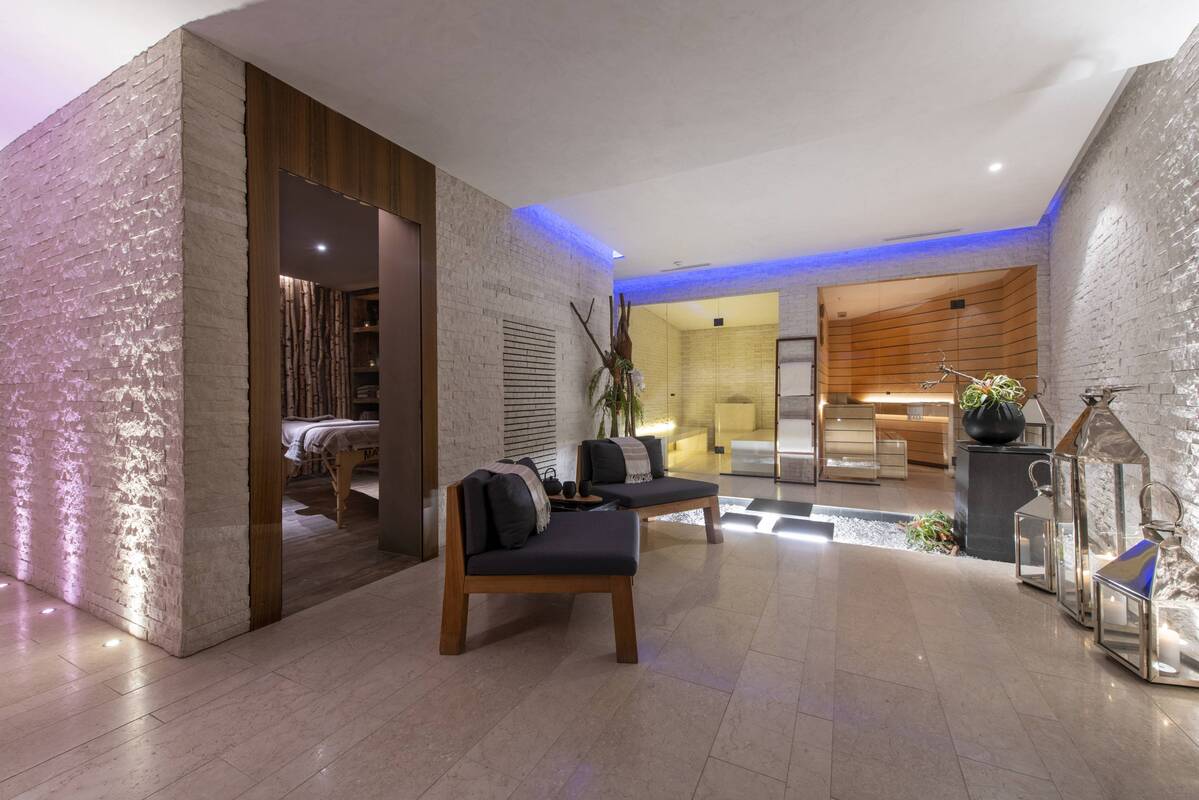 The chalet's fantastic wellness facilities include a sauna, hammam/steam room, massage room and relaxation area. The relaxation area features a fountain and ornamental pond and features Italian marble!