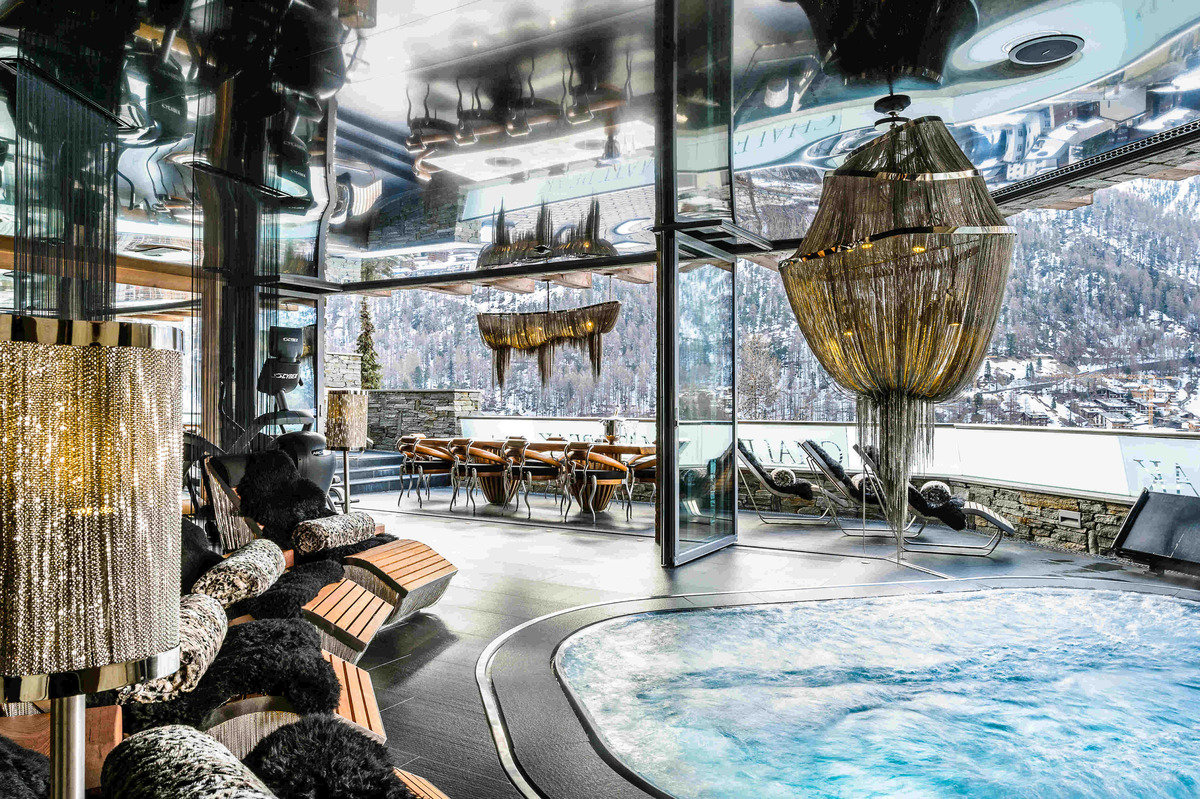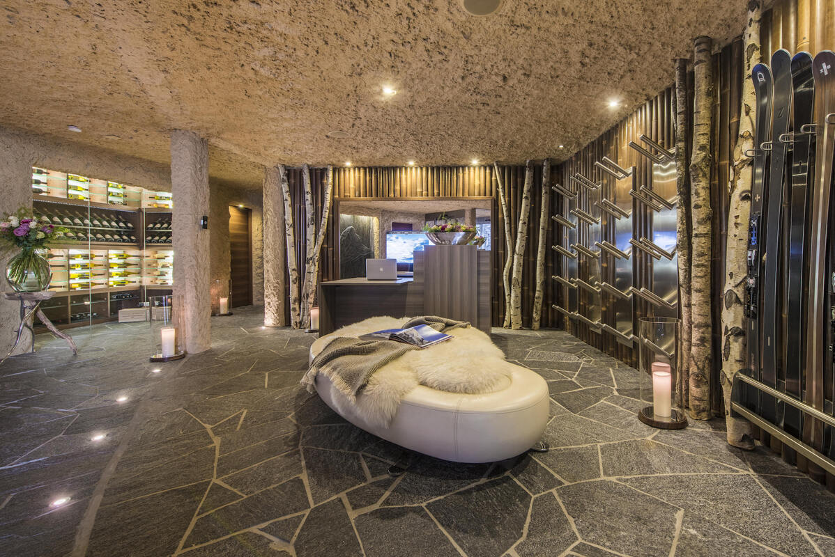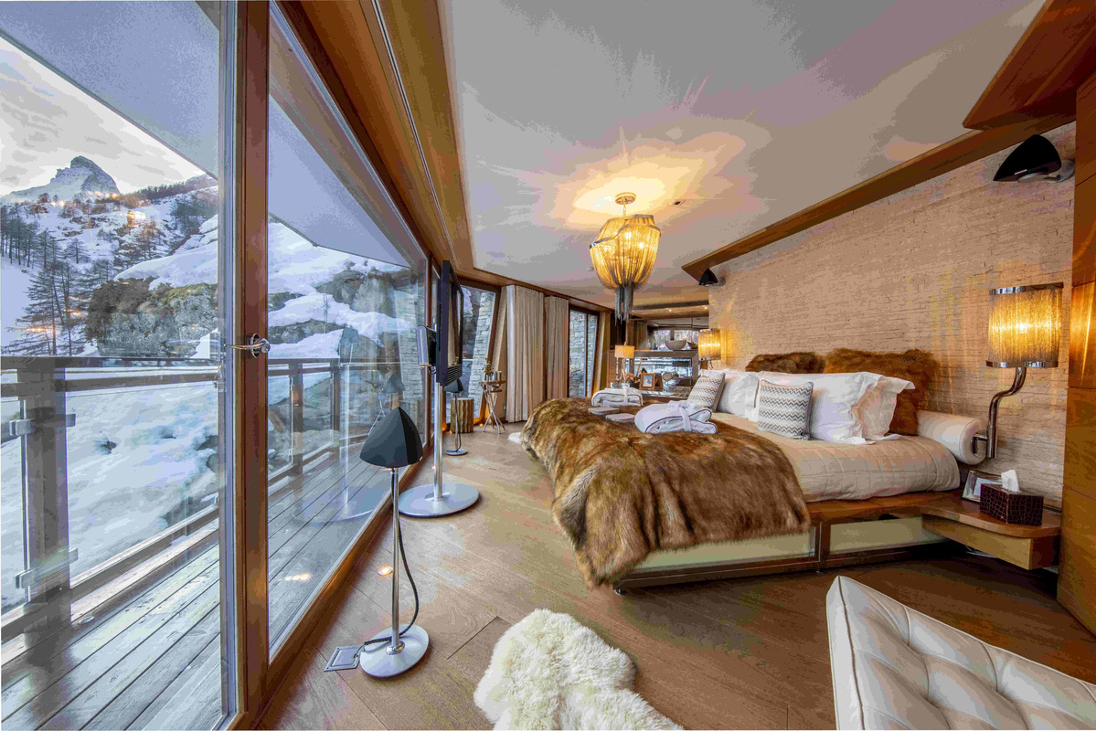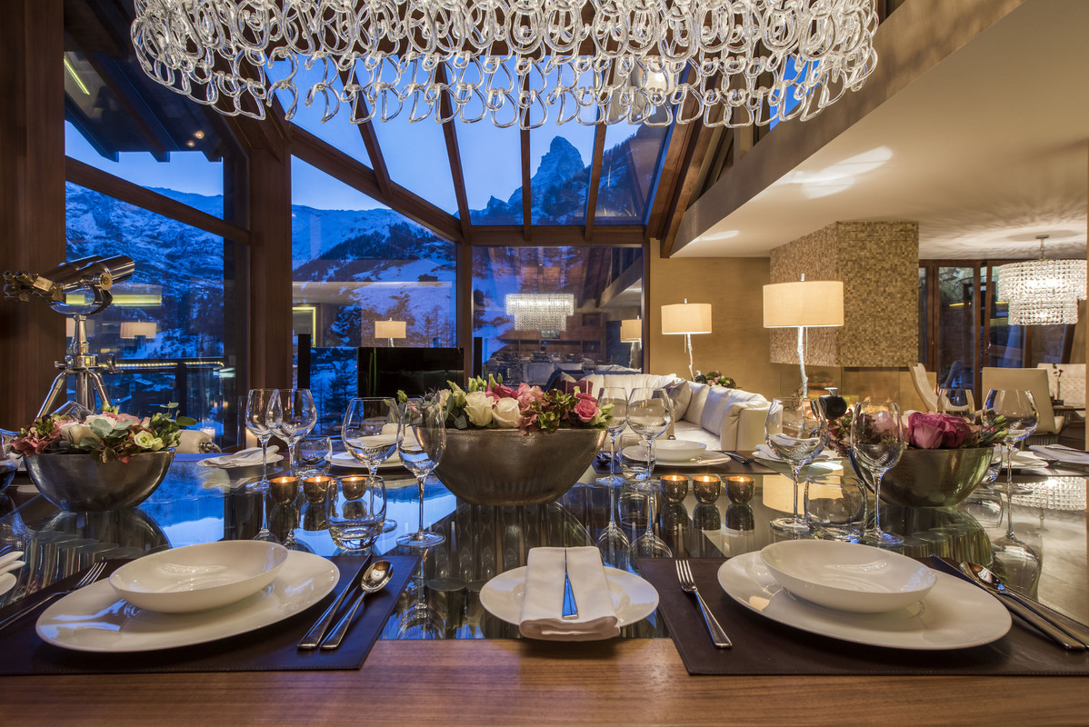 The interior of Chalet Zermatt Peak has been designed to a 5-star plus standard which has set a new precedent in luxury chalet accommodation. Conceptually the chalet has been designed using the very highest quality natural materials and workmanship, incorporating warm colours and focusing on the surrounding landscape and village. The 4.50 metre floor to ceiling windows in the lounge make the most of the stunning views on offer. The interiors are all designer inspired with unique interior fixtures and fittings which have been sourced from all over the world to make this a truly inspiring chalet that oozes style, luxury and panache. There is a private entrance and internal lift and upon arrival you will be greeted by your chalet staff for a celebratory champagne reception. You will experience standards surpassing that of the best 5 star hotels with carefully selected, well trained staff. Once settled into the Chalet, you can sit back, relax and unwind and enjoy the holiday of a lifetime.