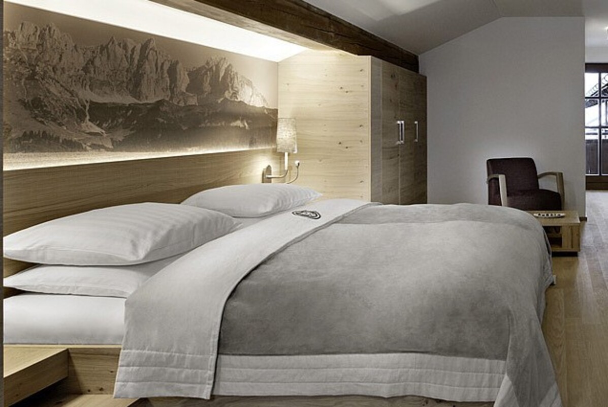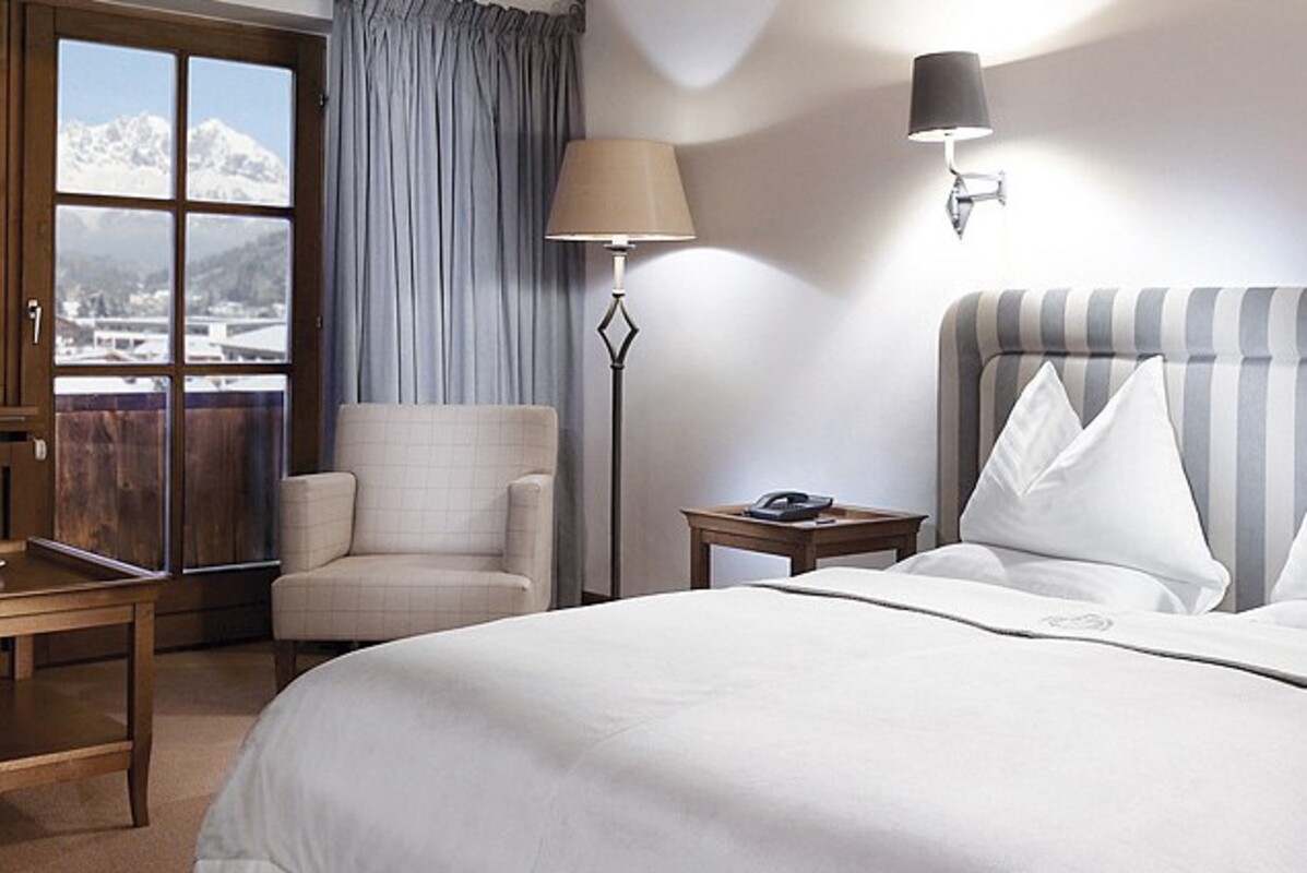 Nearly all 88 rooms and suites are furnished in an elegant Tyrolian country style. An exception is the design-suite "Black Spa" that combines modern architecture with local materials like loden. The Junior Suites, Grand Junior Suites and Suites also feature a private sauna, Bang & Olufsen multimedia centre with Flat-TV and DVD player. The new Spa Studios on the fourth floor offer a breath-taking view over the surrounding mountains.