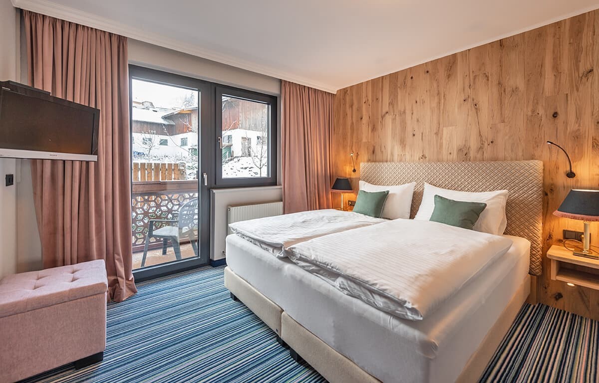 The Hotel Erzherzog Johann in Schladming offers a ski in ski out location and a small but well-equipped wellness spa.