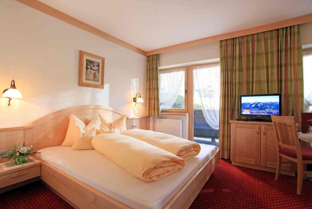 The hotel is traditionally decorated, full of Tyrolean charm and character, with a comfortable lounge and open fireplaces. The Austrian twin bedrooms have a bath or shower and some are able to sleep up to three guests. As an added bonus all rooms have a balcony.
