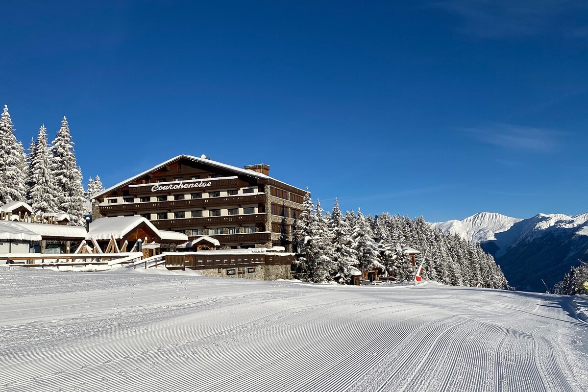 Set in a fantastic location directly on the Bellecote piste, this charming hotel offers a good standard of comfort and modern facilities. The rooms are all en-suite and comfortable. The Courcheneige is situated, at the top of the resort and offers true doorstep skiing. You can ski to and from the hotel, or take the free shuttle bus until 7.30pm. After that it is a 15-minute walk down to the resort centre. The Courcheneige is relaxed, informal and good value. Attractive lounge with beamed ceiling and panoramic views. Cosy cellar bar. The dining room serves traditional cuisine and has a large sun terrace.