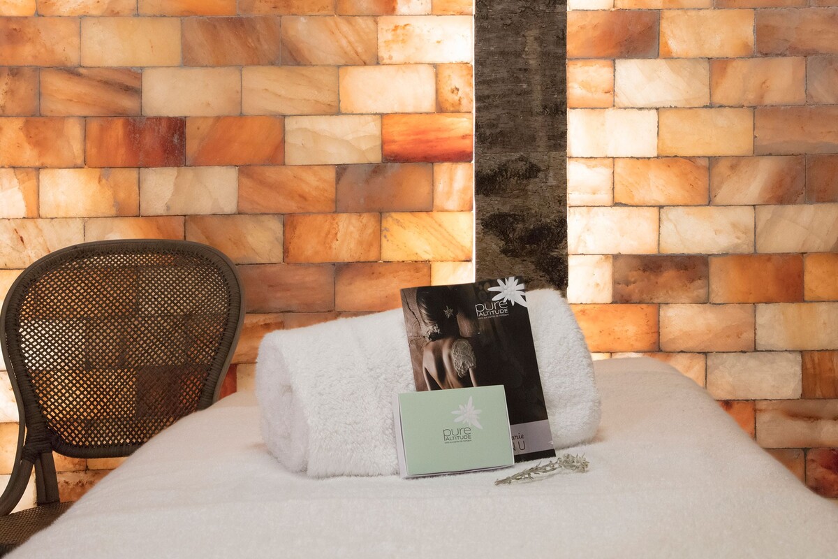 In addition to the spa, there is a fitness room with yoga classes, an indoor pool under rough wooden beams, massages, shia-tsu, hydrotherapy, and pressotherapy sessions . There is a cozy piano bar for pre-dinner drinks.